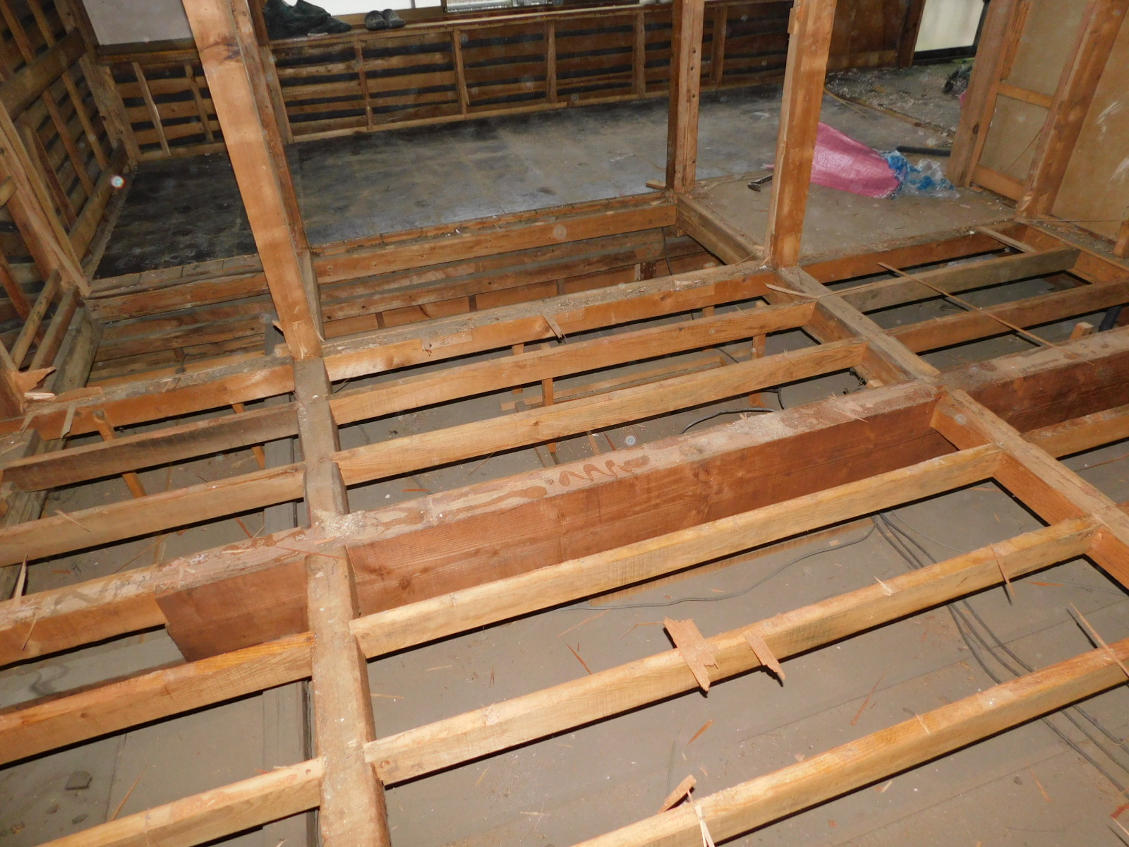 2階の床を支える根太(ねだ)は丈夫でしっかりしていました。(コン太ではありません