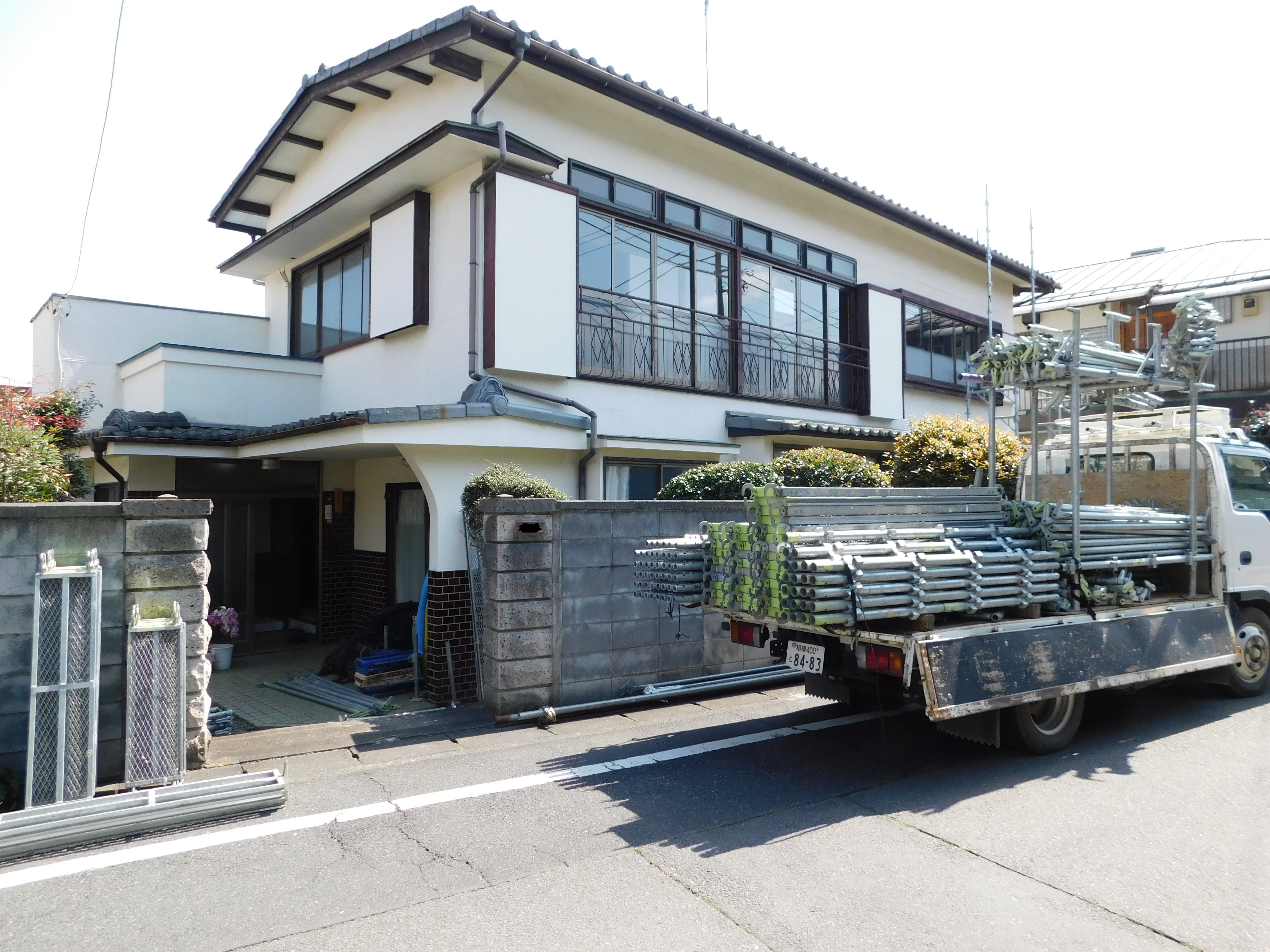 屋根・外壁の外装工事も同時に進むので、仮設足場を掛けさせていただきました。