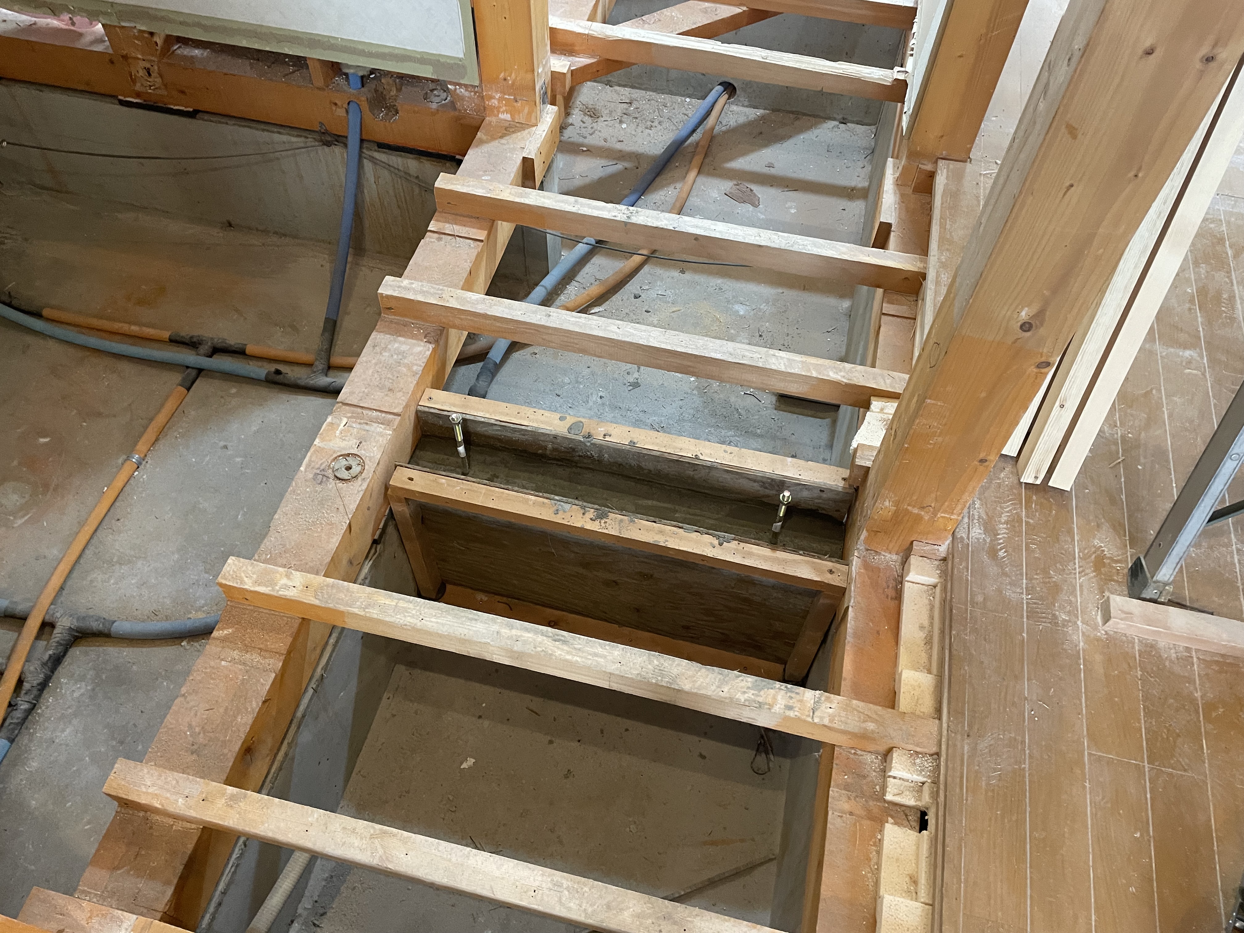 1階は、新たに鉄筋コンクリートの基礎を打って耐力壁を増やしました![]()