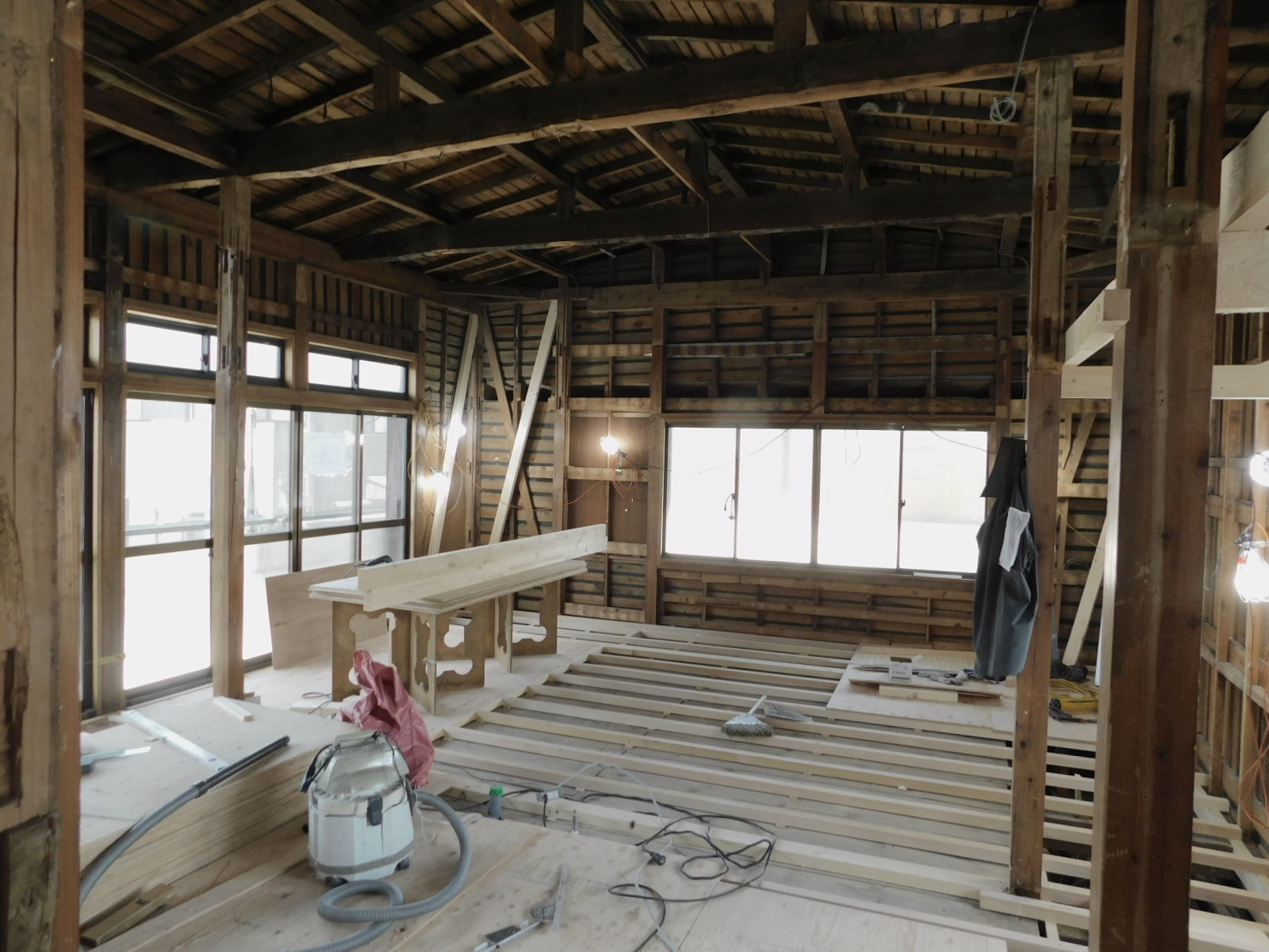 内部からスケルトン(骨組み)に解体して、床の下地から新しくやり替えました。