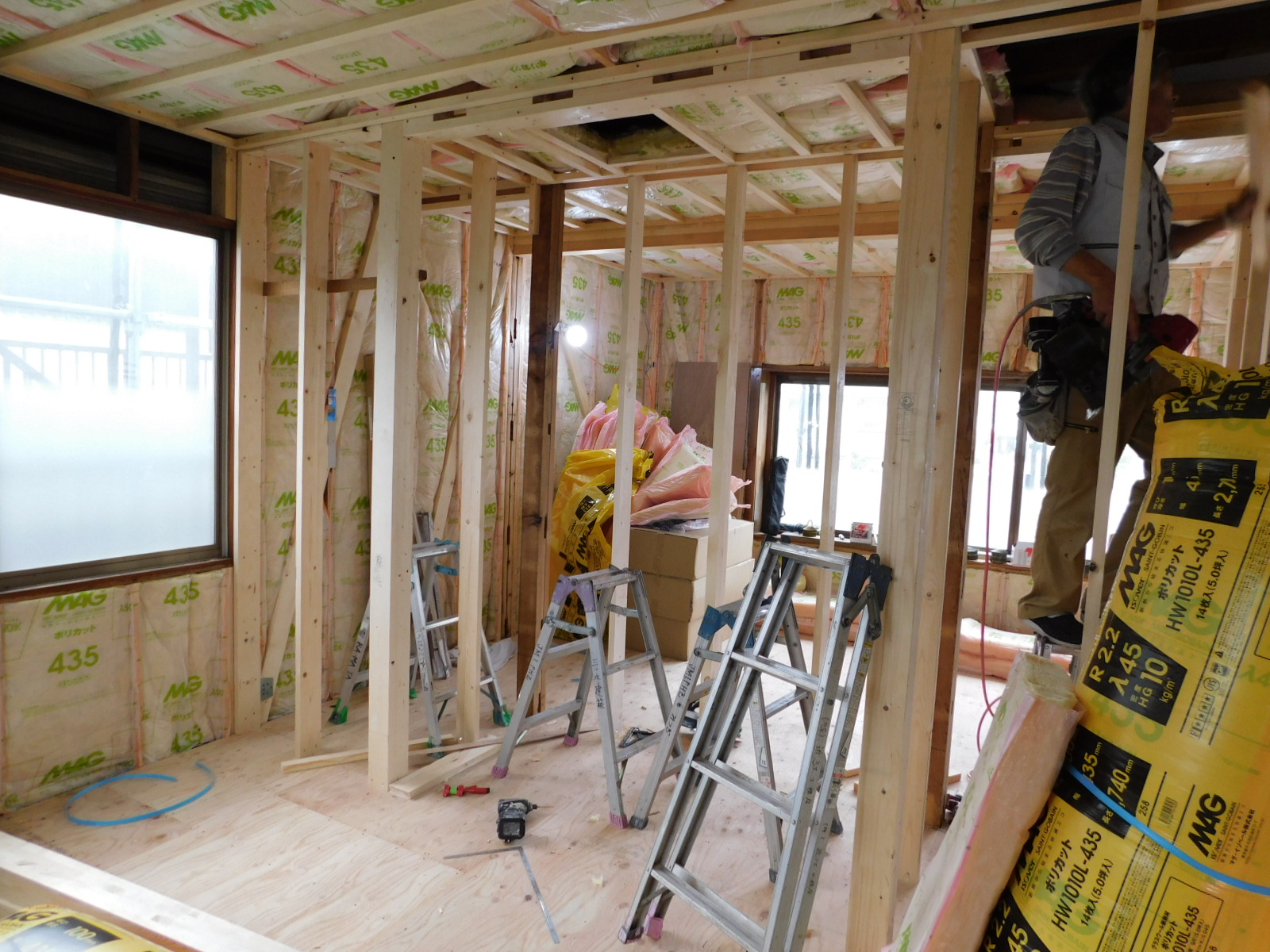 耐震補強をして、壁と天井には断熱材をパンパンに入れました