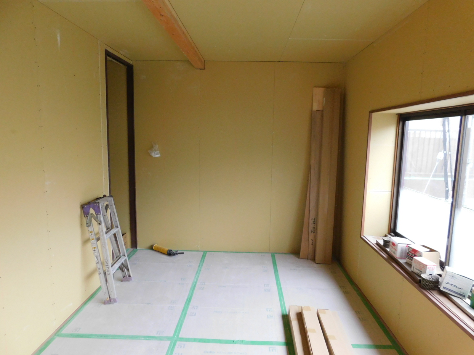 床は構造用合板を下貼りして、その上にフローリングを貼る予定です。