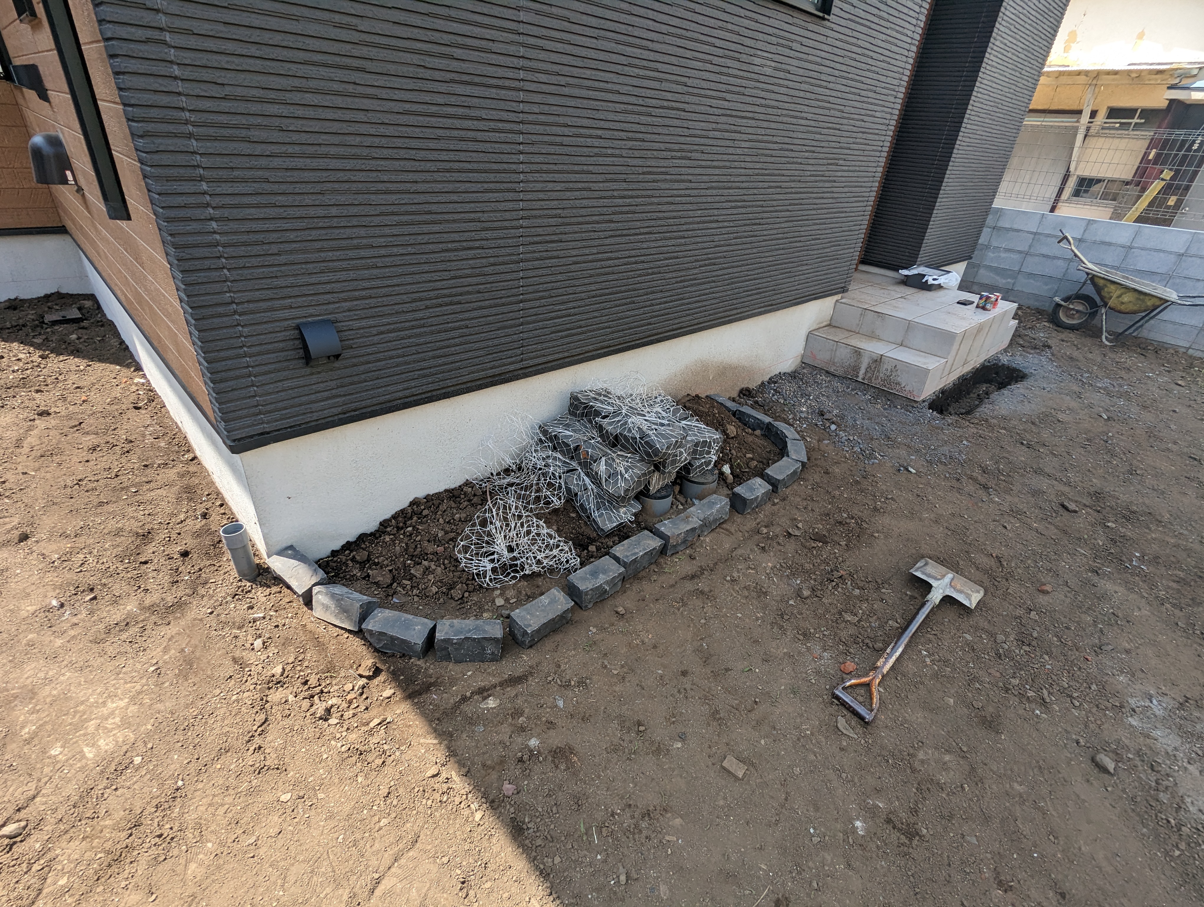 工事範囲の整地と植栽スペース等の配置を決めていきます![]()