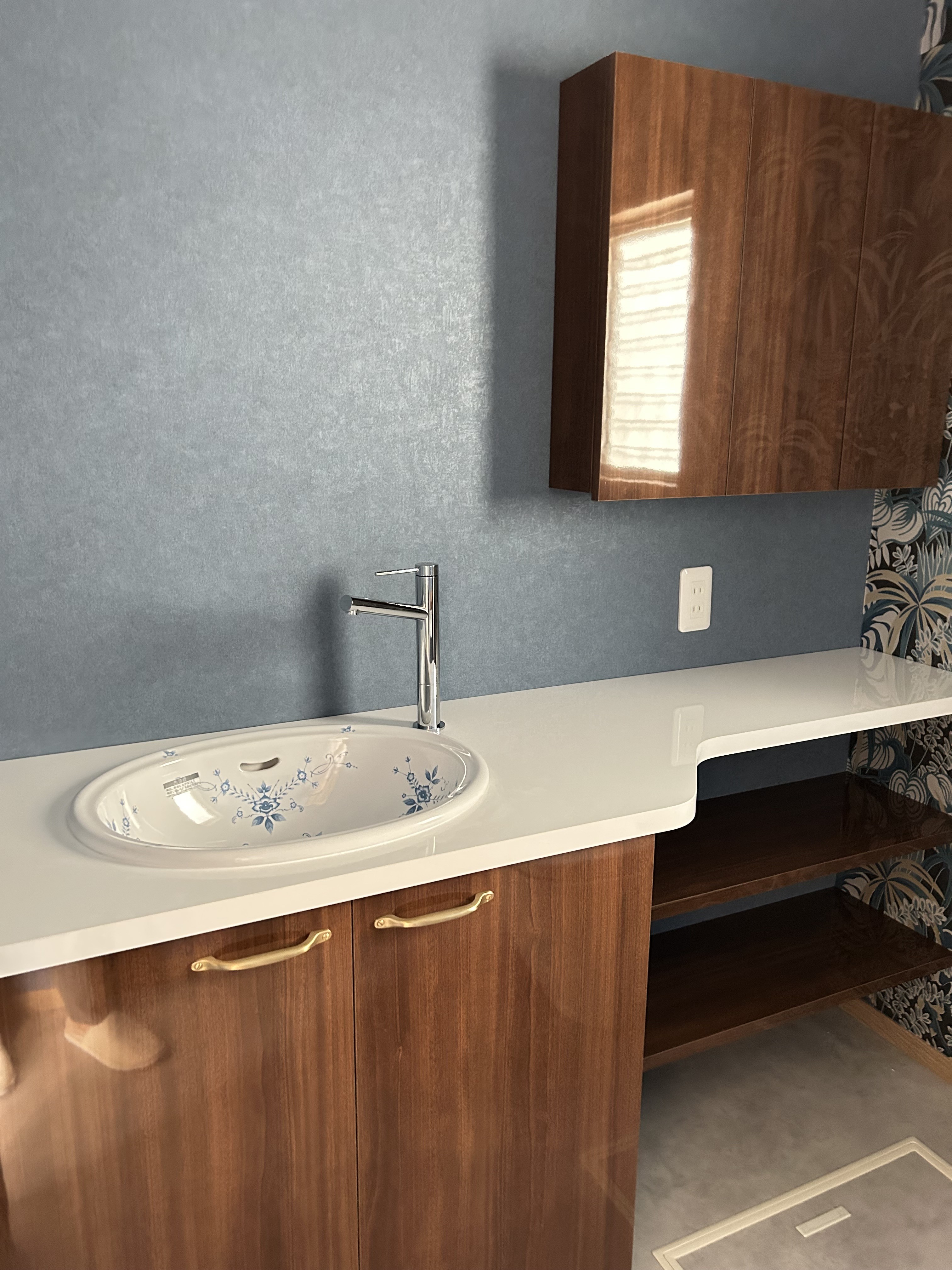ボウルやカウンター・水栓まですべてお選びいただき、完全オリジナルの造作洗面になりました