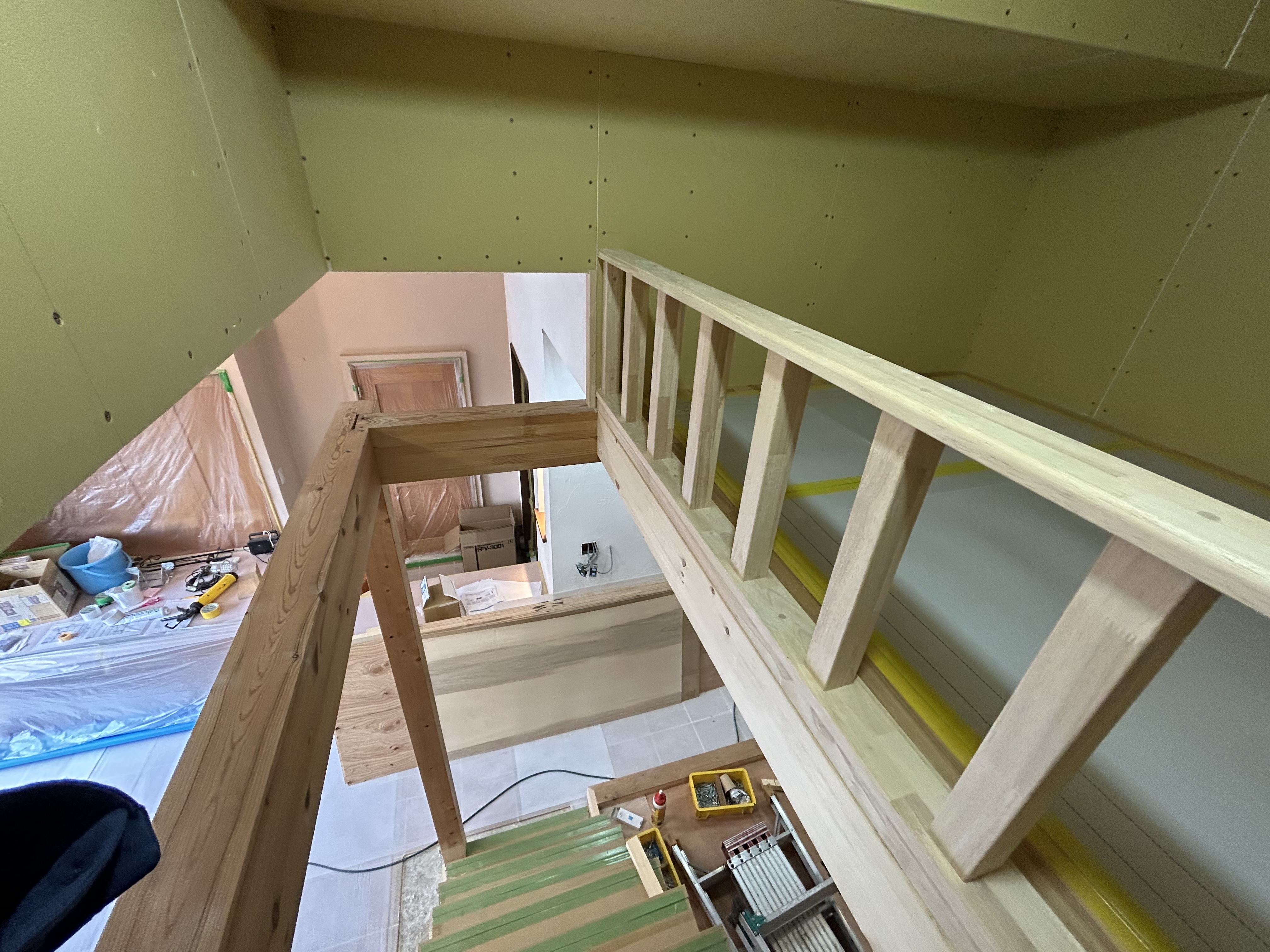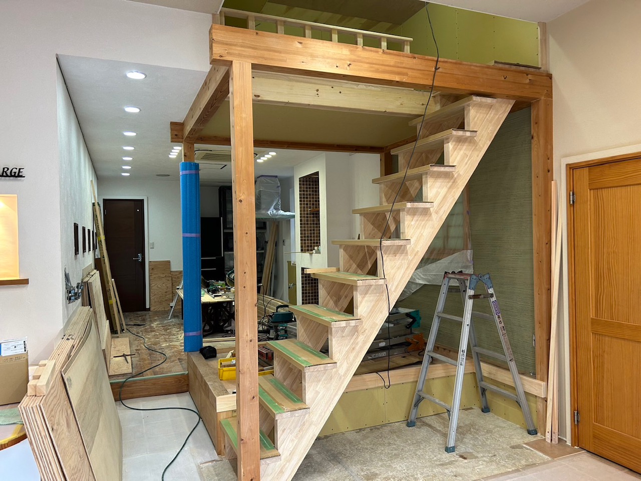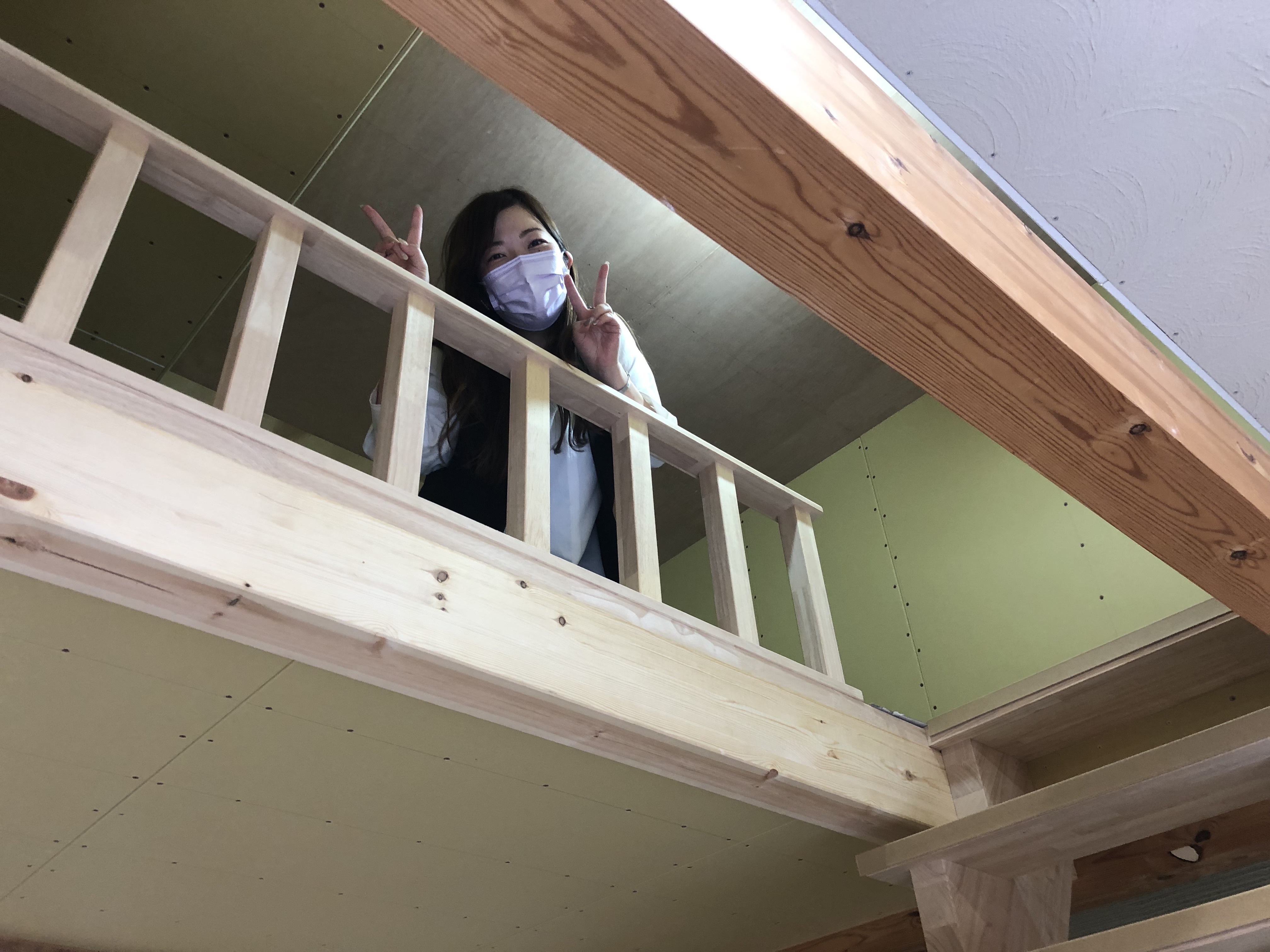 ロフトの柵と階段は、昨年末に完工した新築のU様邸を参考にしたそうです![]()