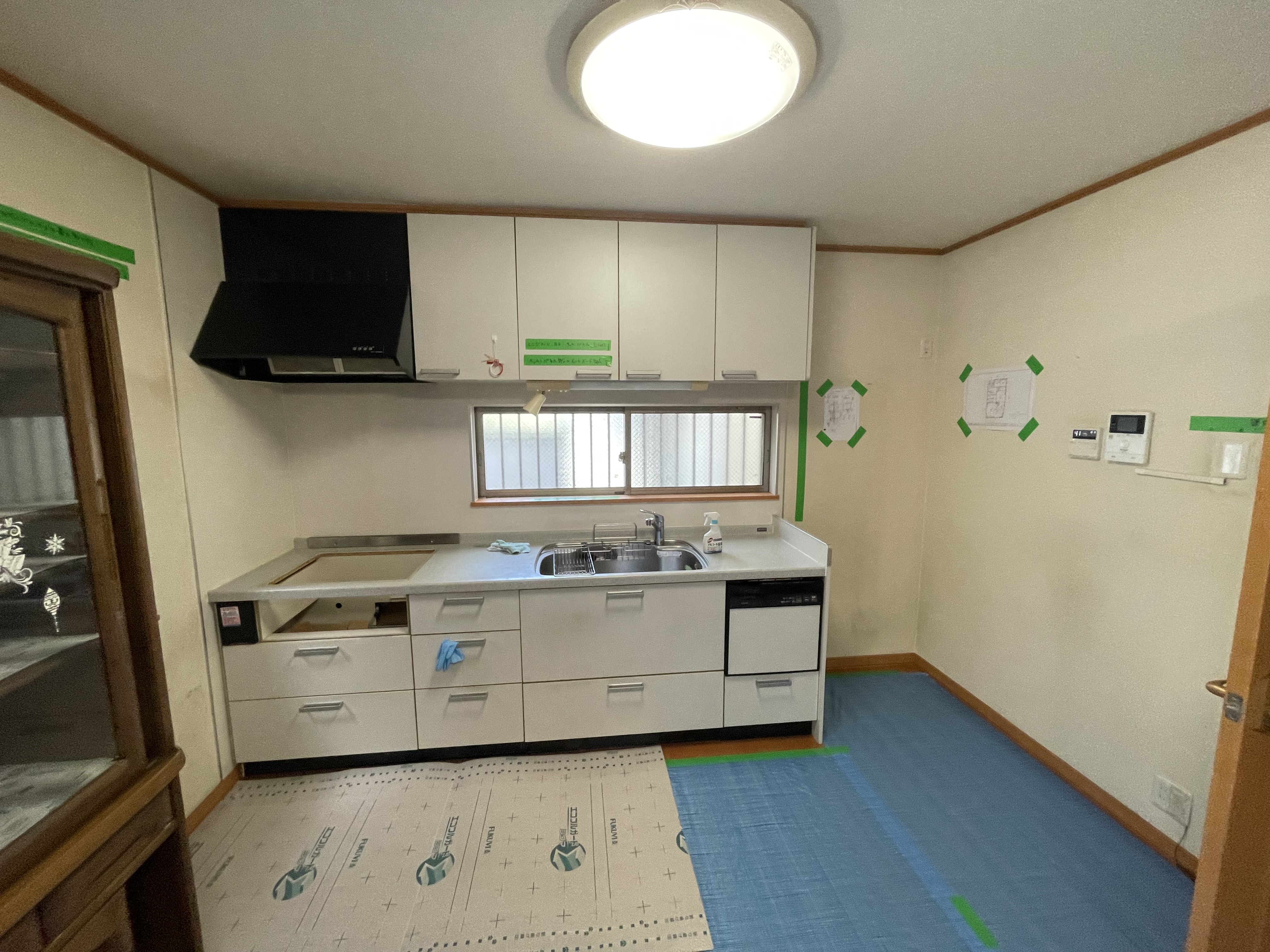 リフォーム前は西側にあって壁付けだったキッチンを東に移動して対面式にするプランです![]()