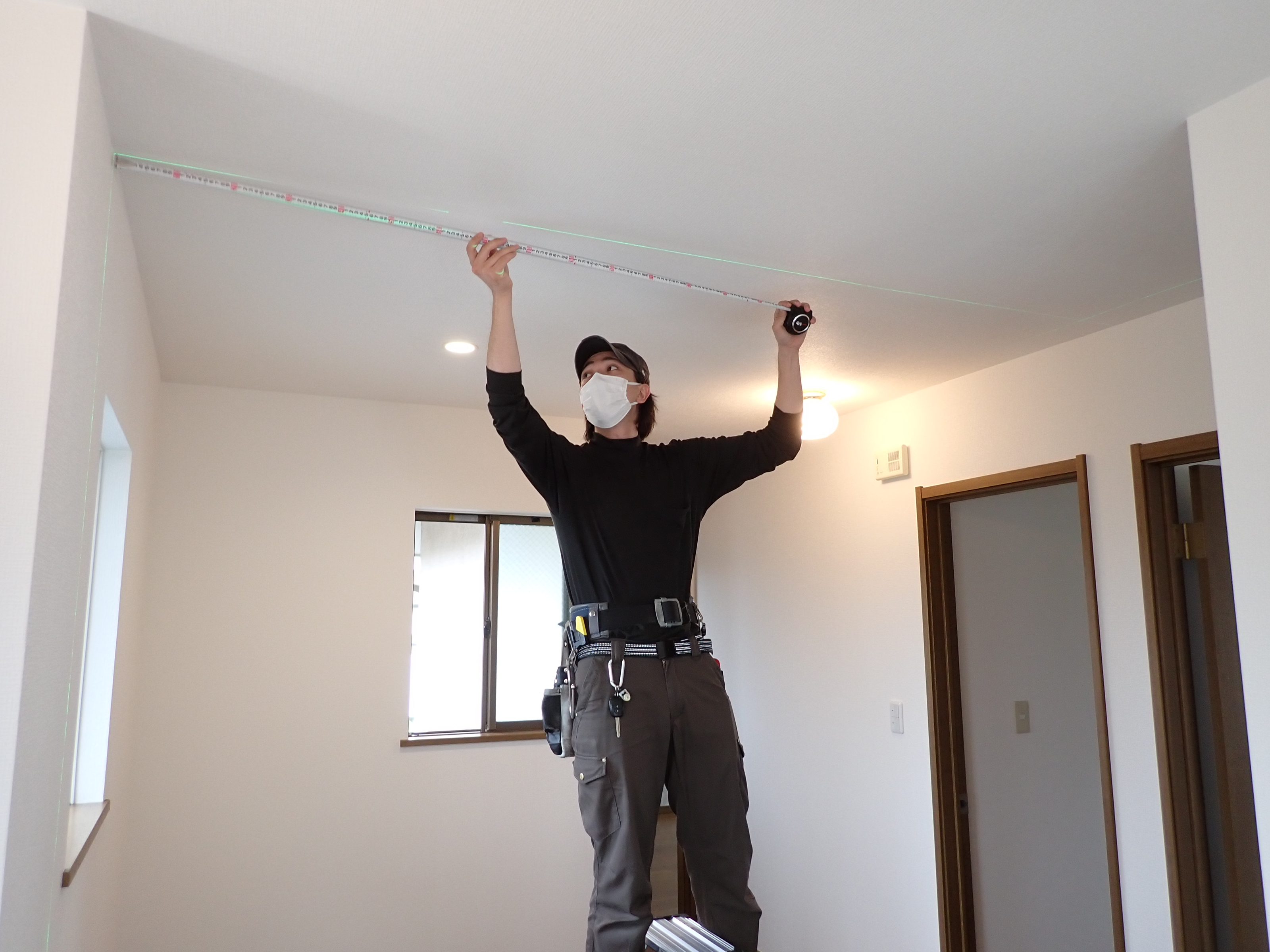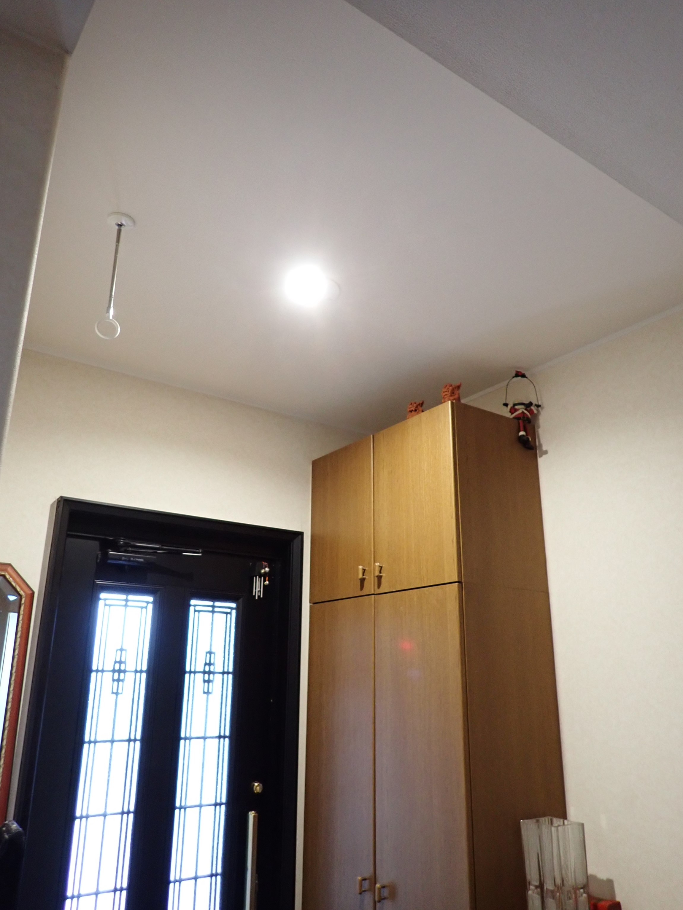 玄関上には天井ができたので、ダウンライトを設置して