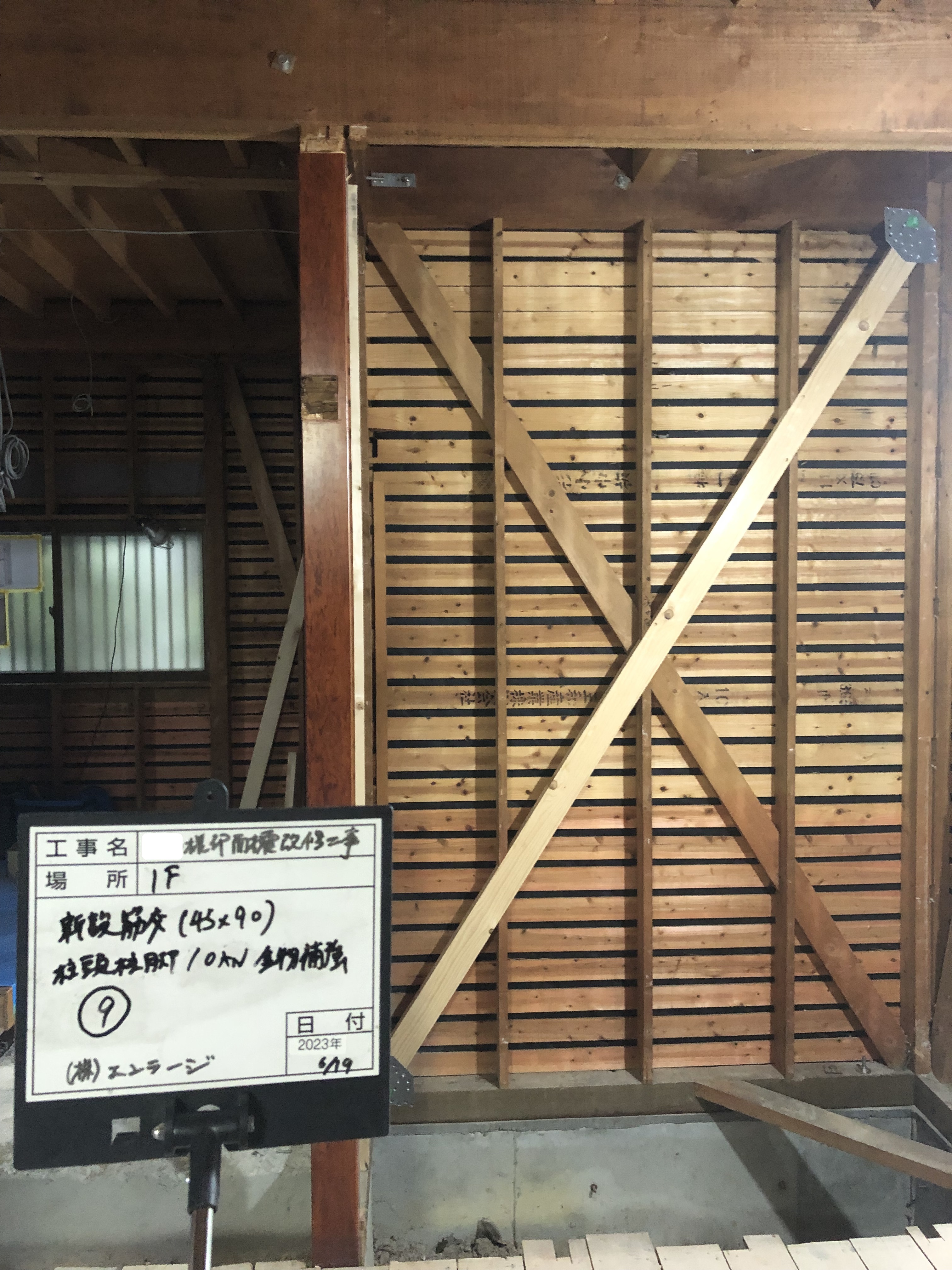 現場では、耐震補強設計の内容に沿って耐震補強工事をおこなっています!