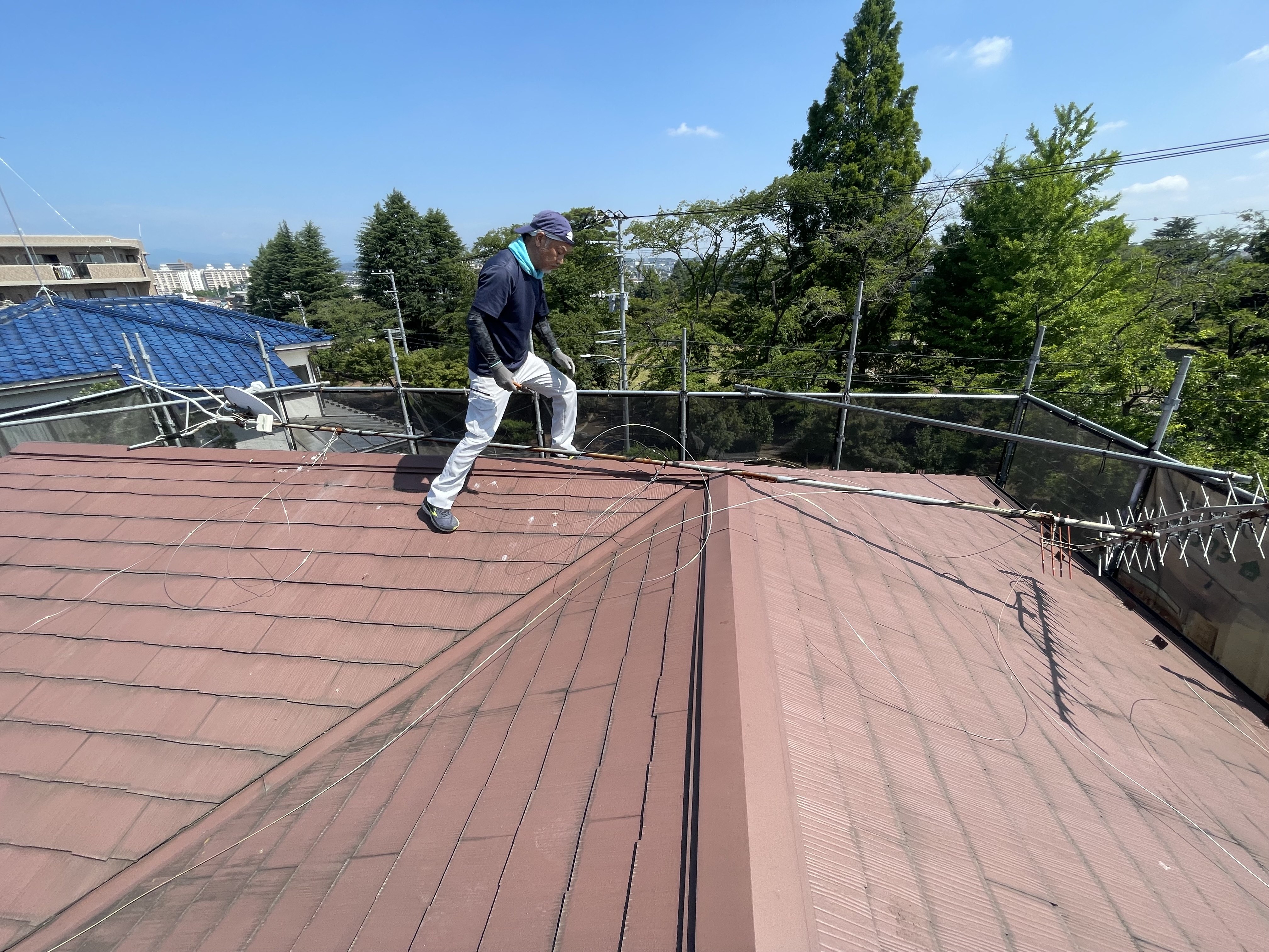 不要なアンテナを撤去して、コロニアル葺きの屋根を塗り替えさせて頂きました。