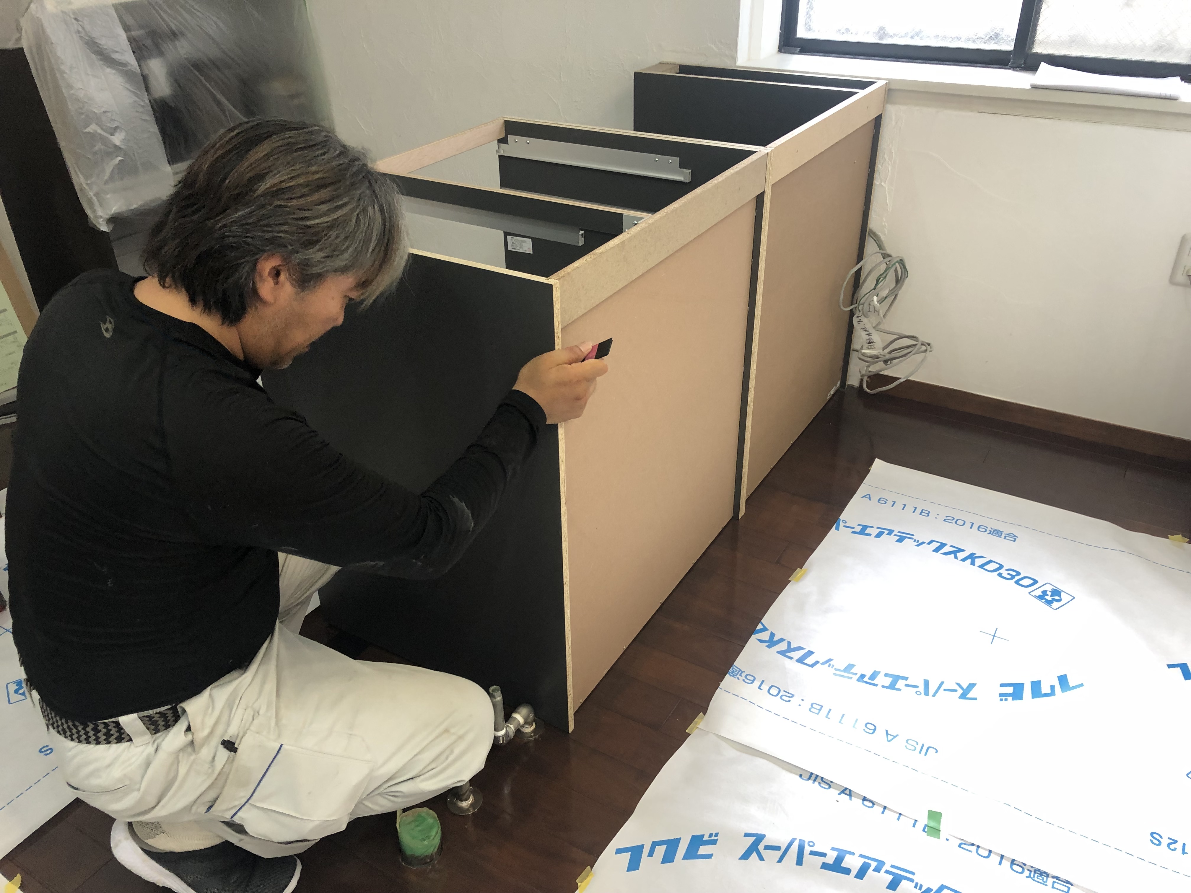 先日、「今日はキッチンが入るよ~!!」ということで見学に行ってきました