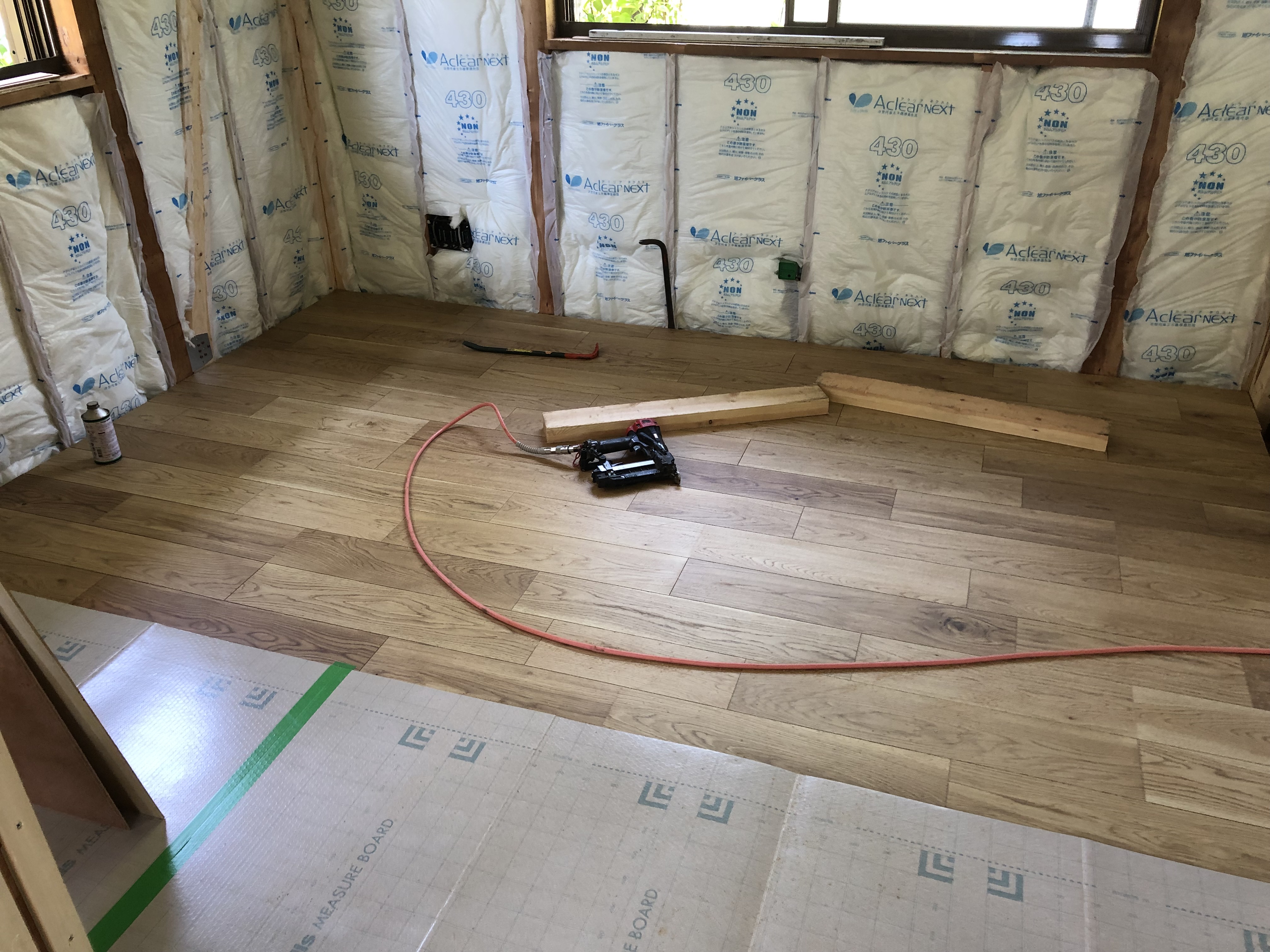 現場ではフローリング貼り工事が始まりました。