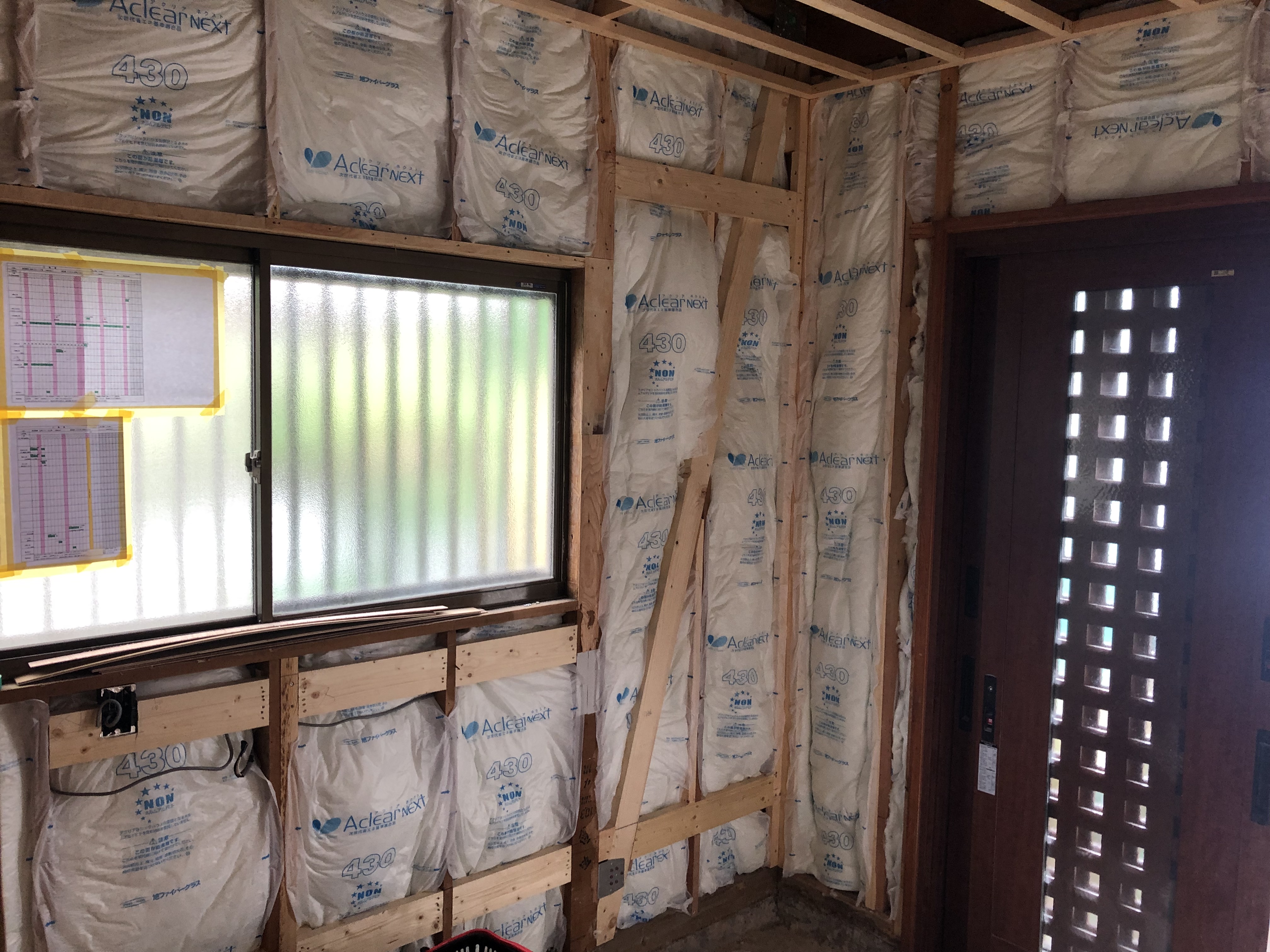 大工さんの耐震補強と断熱工事はほぼ完了しました。