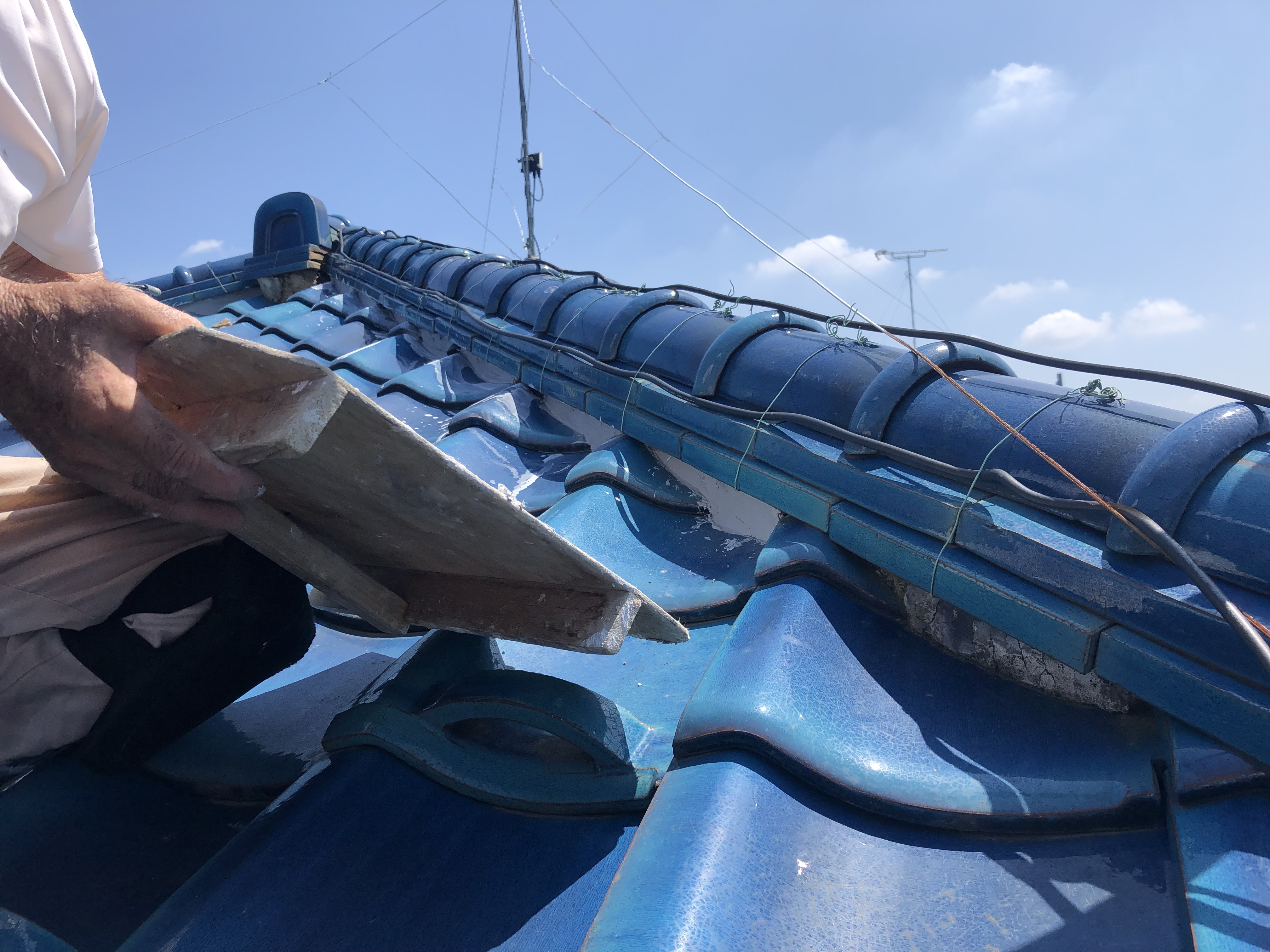 瓦屋根は留め付けを確認し、漆喰の補修を行いました。