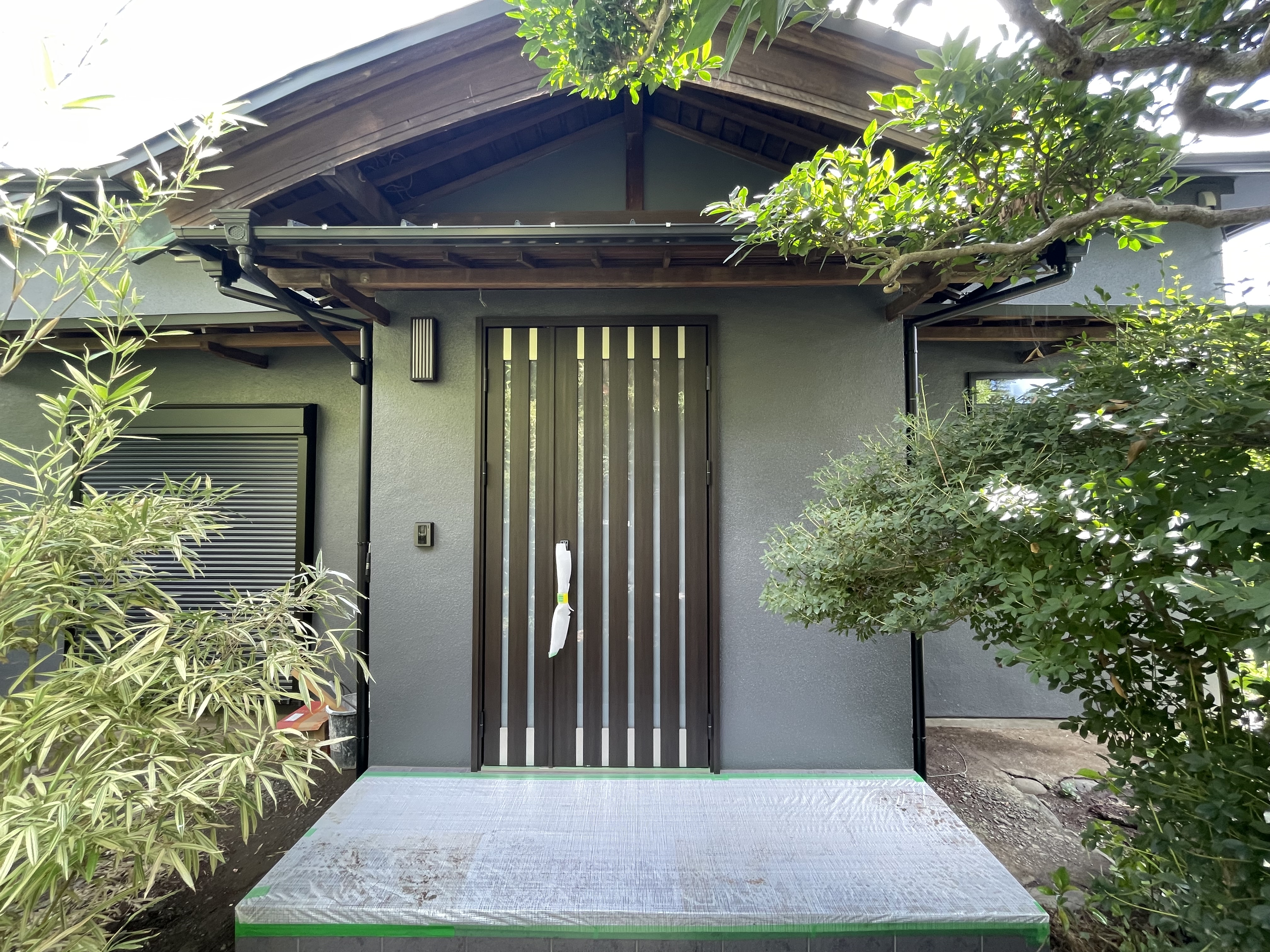 リノベーション完成後の玄関は和の趣を残しつつも最新式のハイテクな玄関ドアに交換しました![]()
