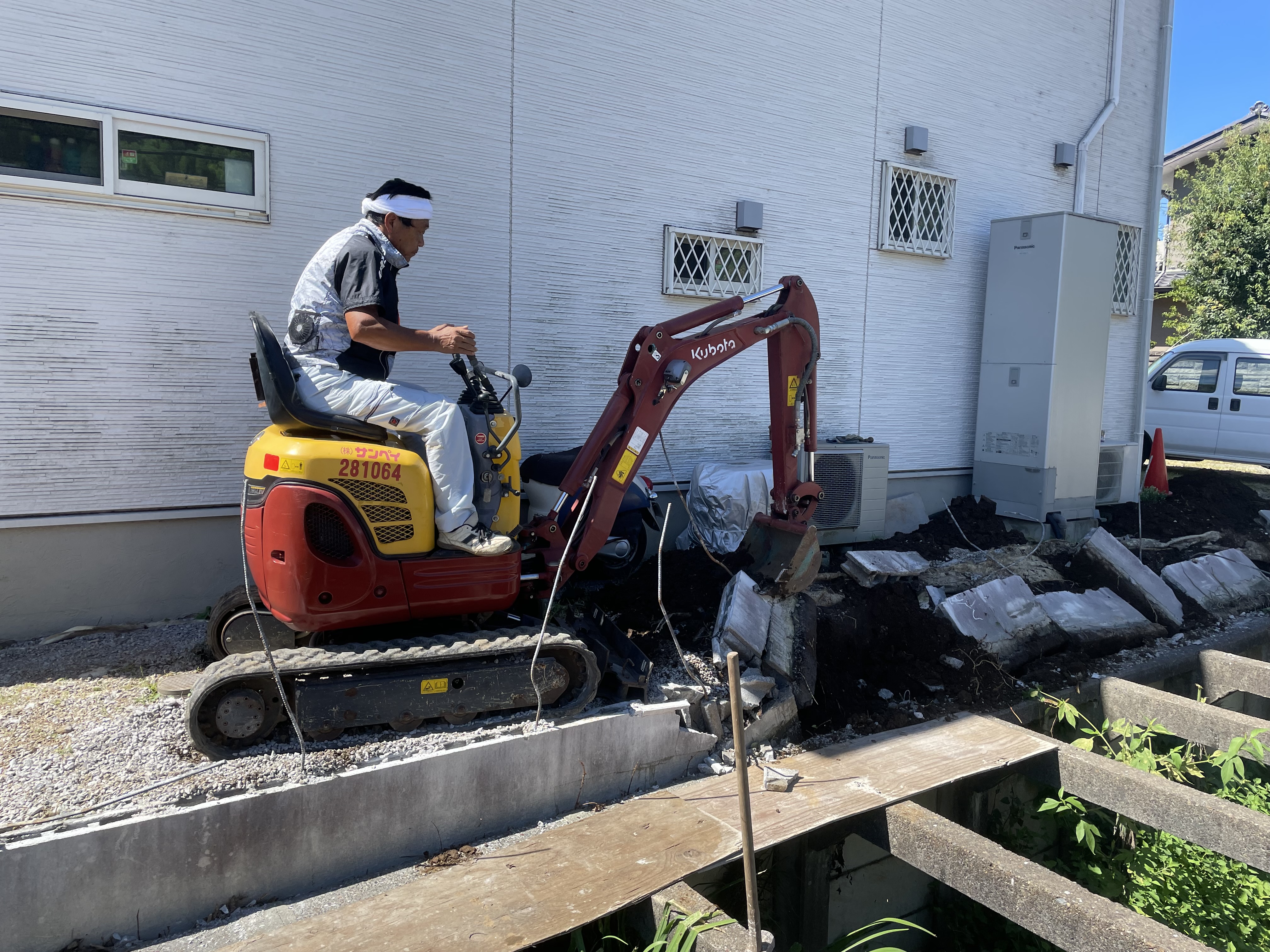 外構職人のMさんはとても力持ちですが、さすがに手で壊すのは難しいようです(笑)