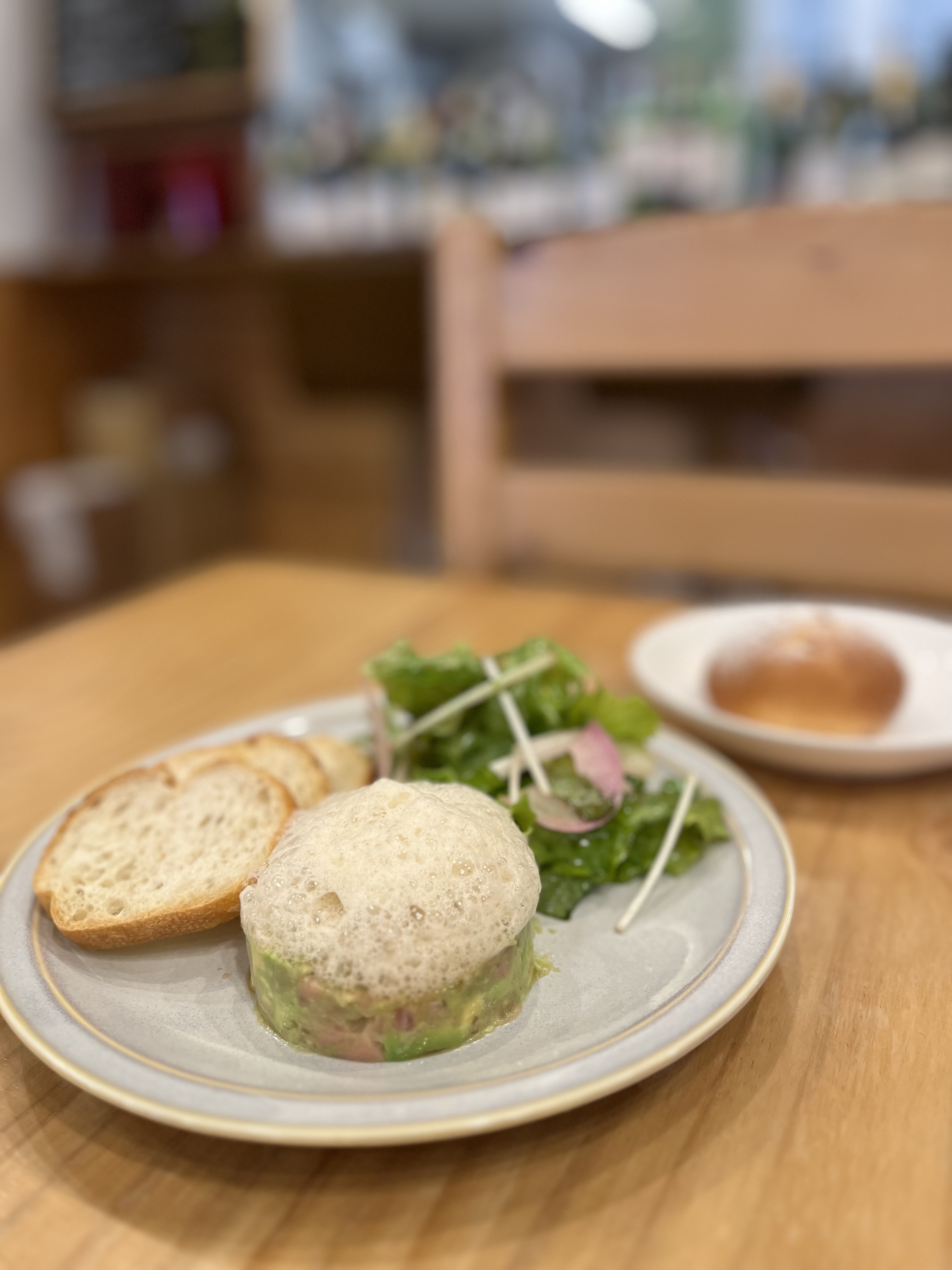 『ポン酢の泡を乗せたマグロとアボガドのタルタル』