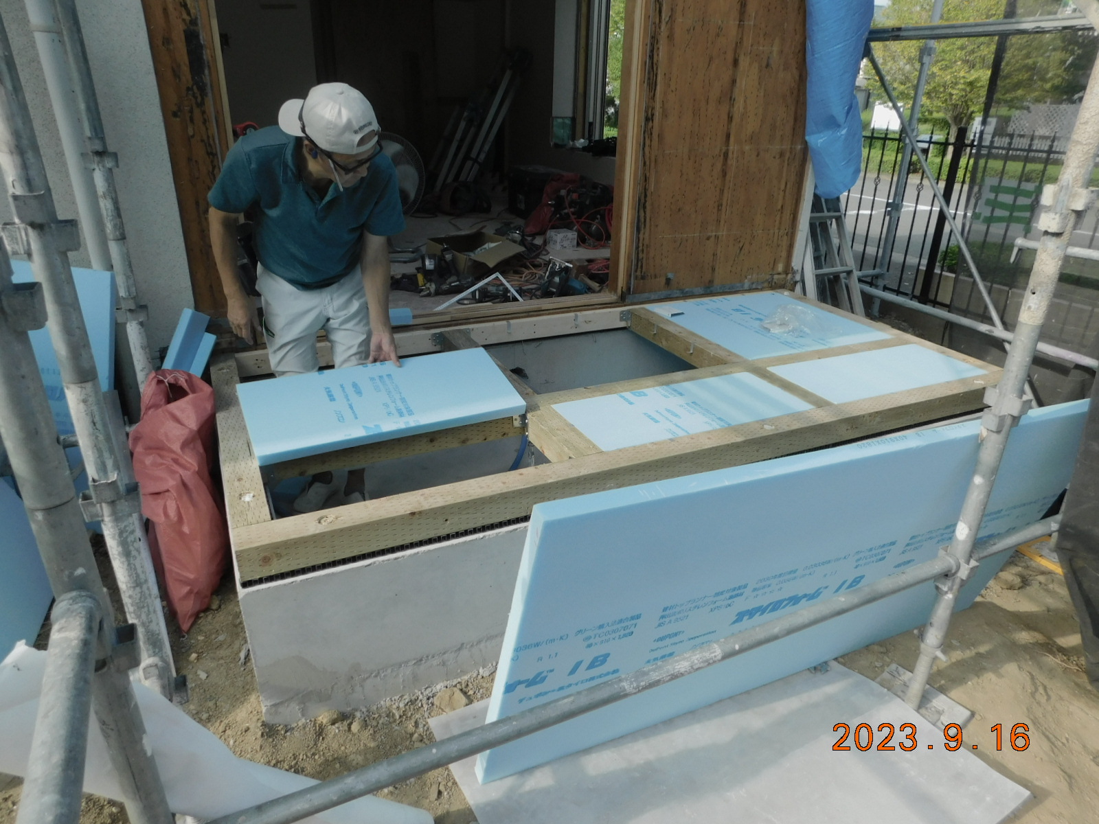 小さい面積ですが、床下にはしっかり断熱材を入れて行きます![]()