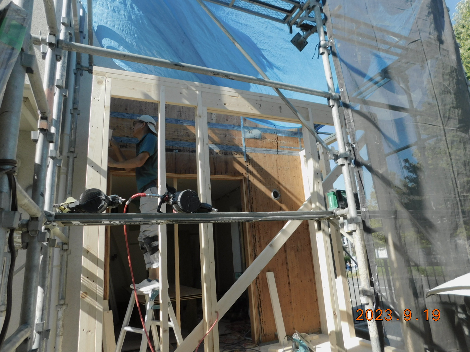 早目に外壁や屋根の下地を作って、雨風をしのげるように施工する予定です![]()