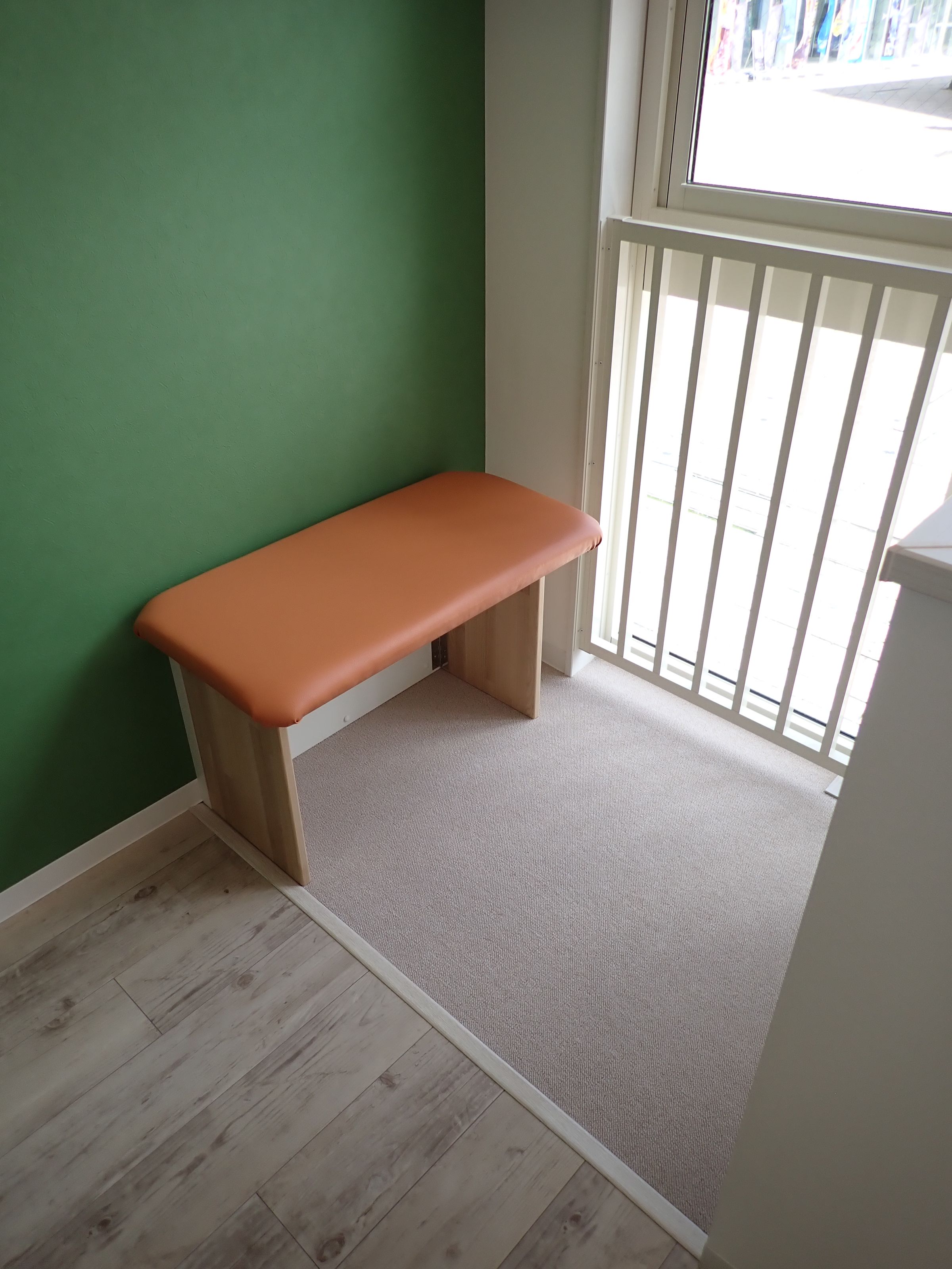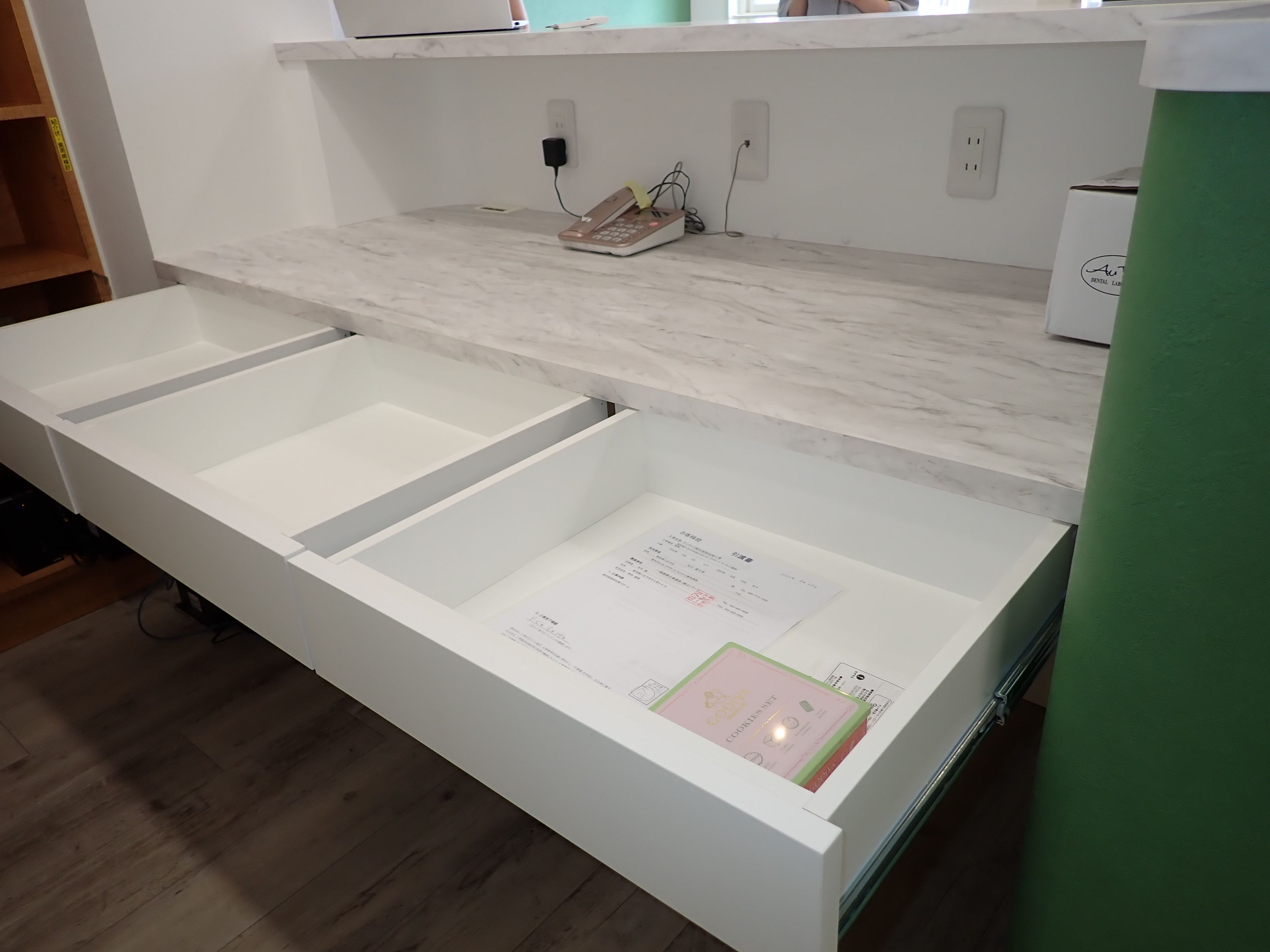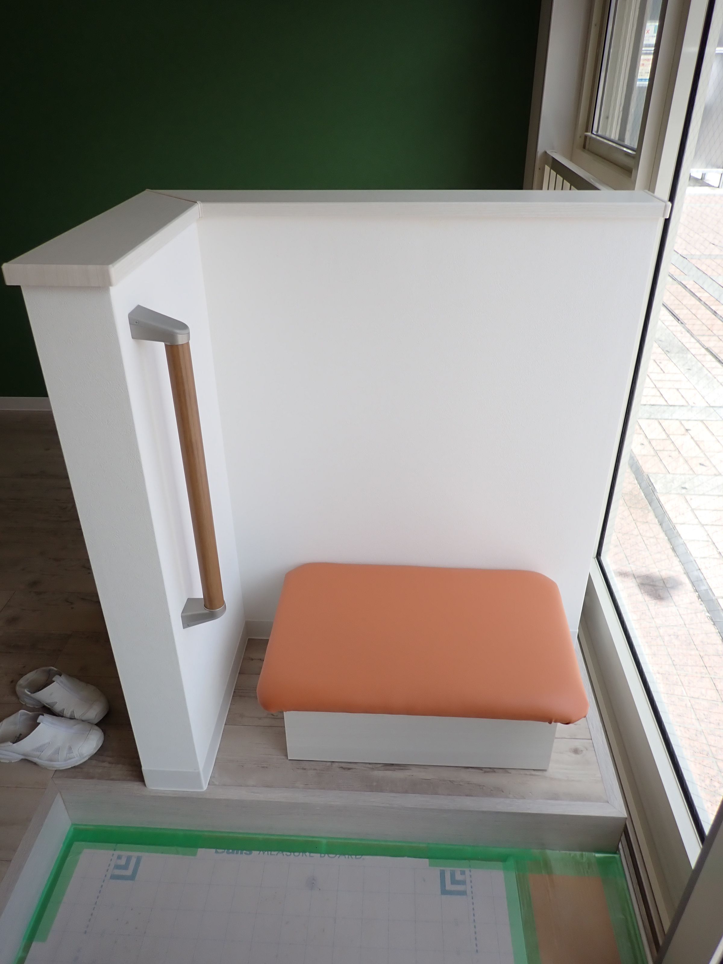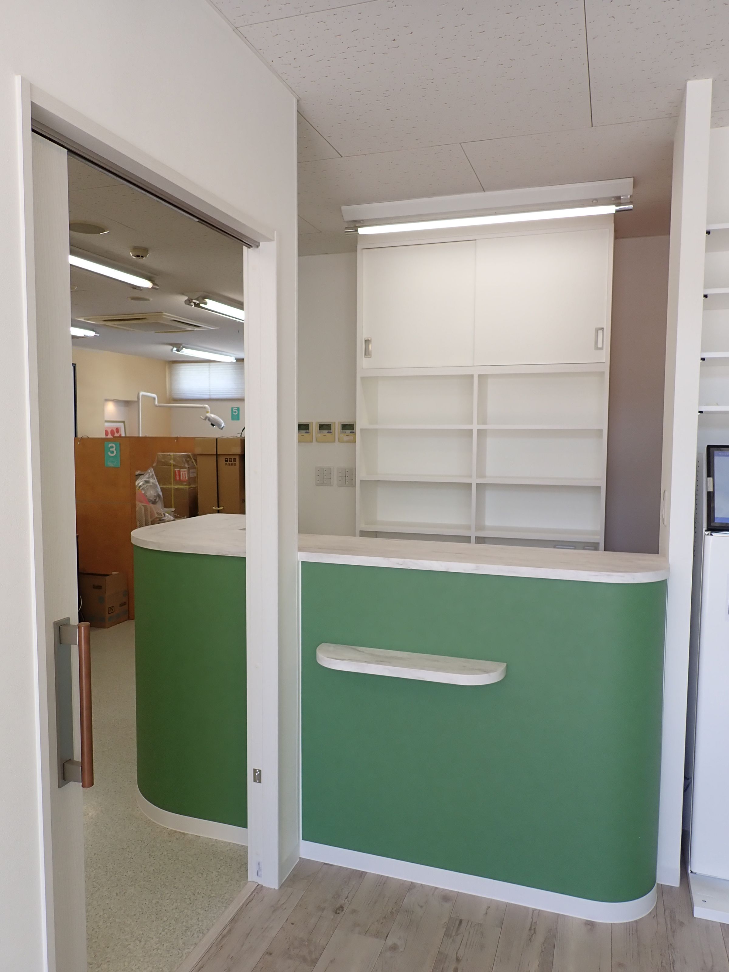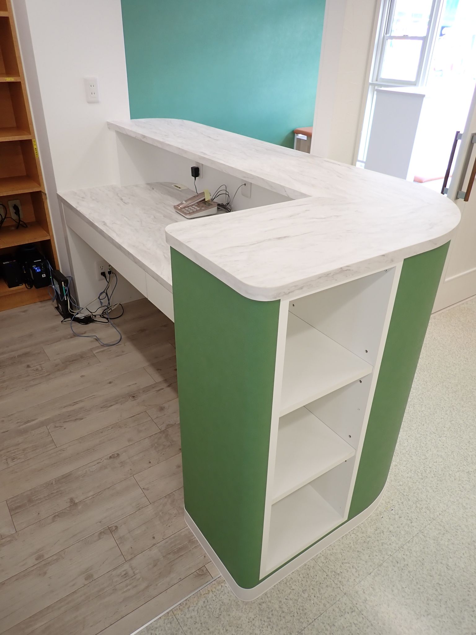 また、受付カウンターやカルテ棚、ベンチ収納、折り畳みベンチは