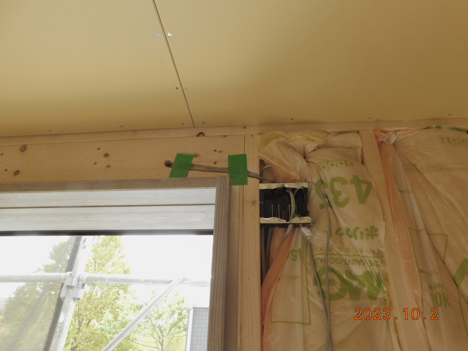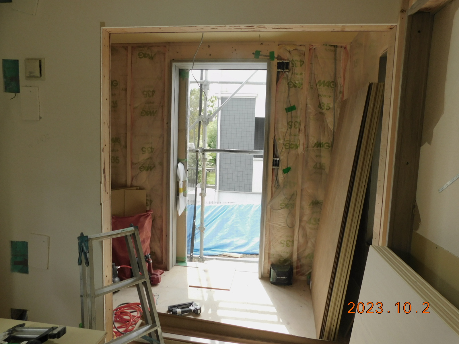 室内は大工さんが断熱材を入れて、ボード貼りを始めたところです。