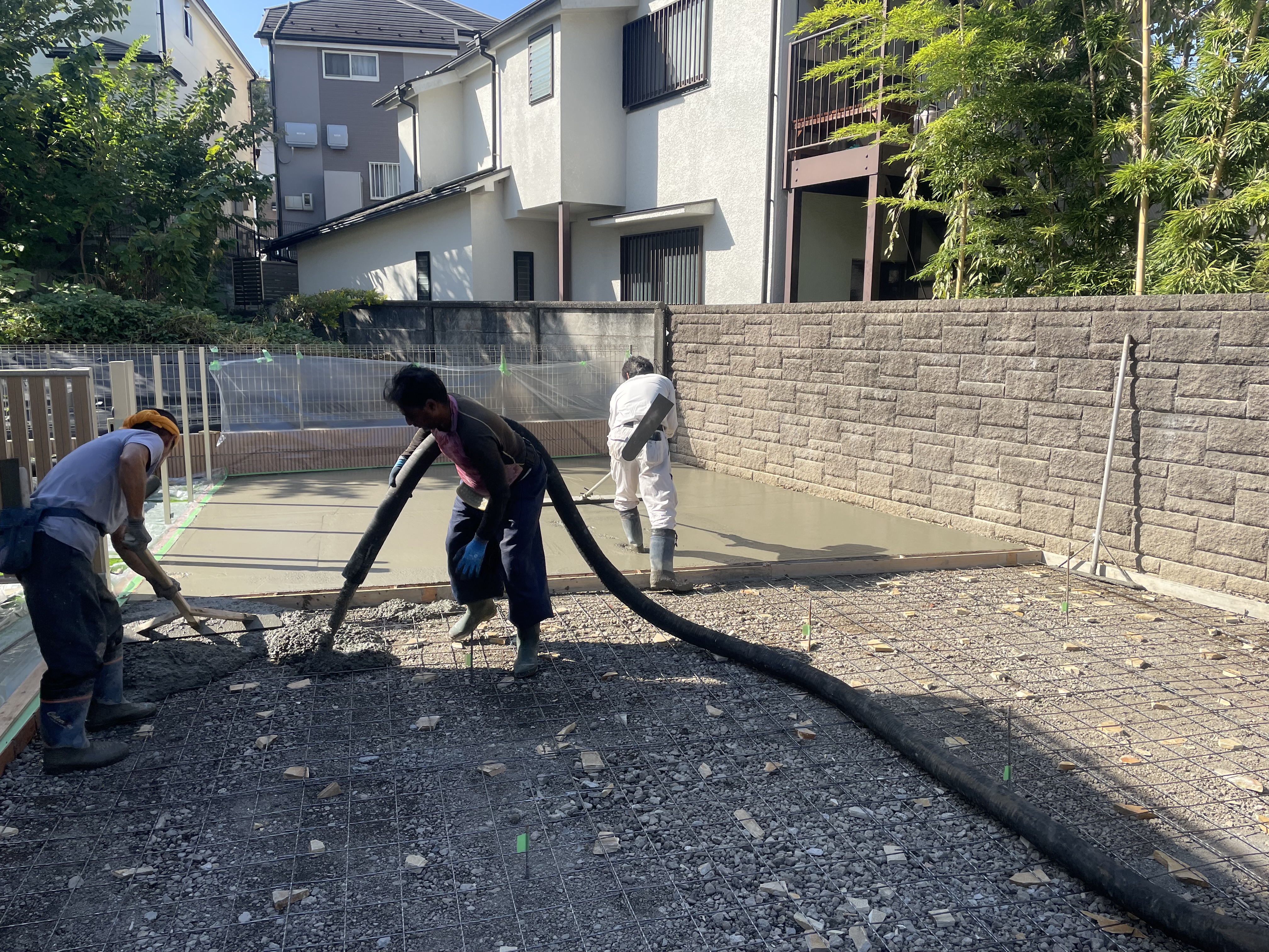今日は外構工事を施工中の八王子市S様邸で、土間コンクリートの打設を行いました![]()