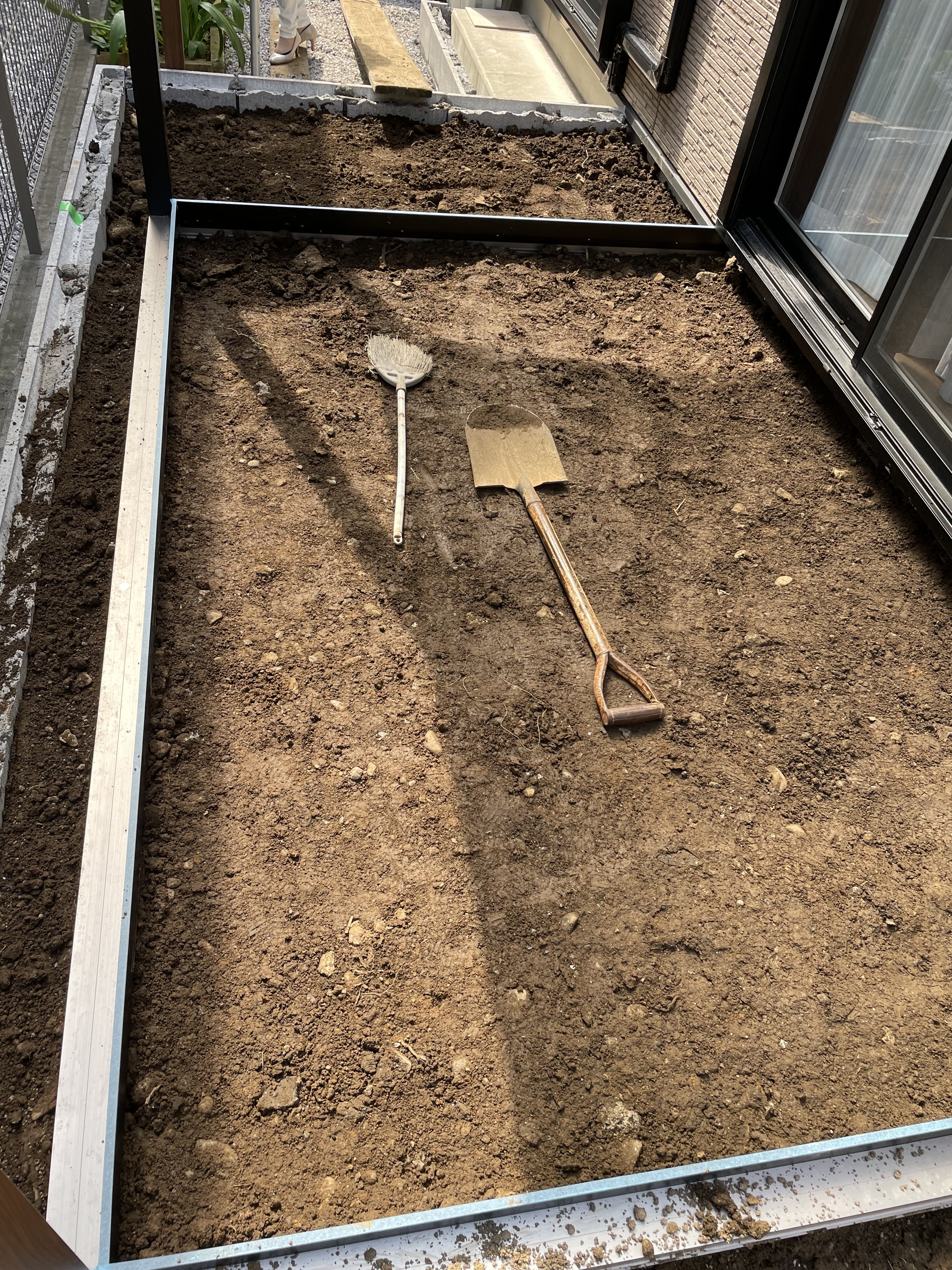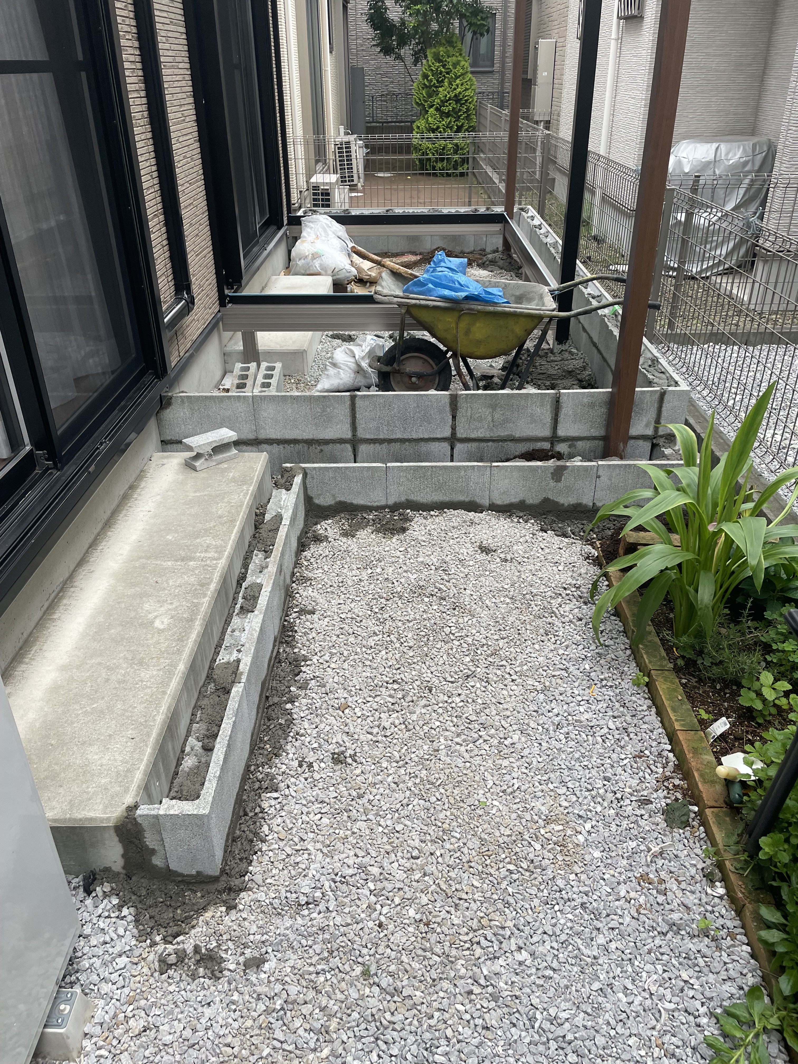 お庭の半分をガーデンテラスにしていきます![]()