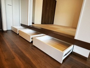 ウォークインクローゼットやシューズインクローゼット、小上がり下の引出収納のおかげで、収納力もばっちりです。