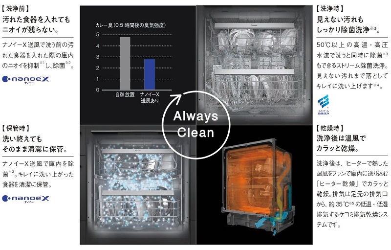 日本製の食洗機は日本の気候に合わせた設計のため、乾燥機能がついています![]()