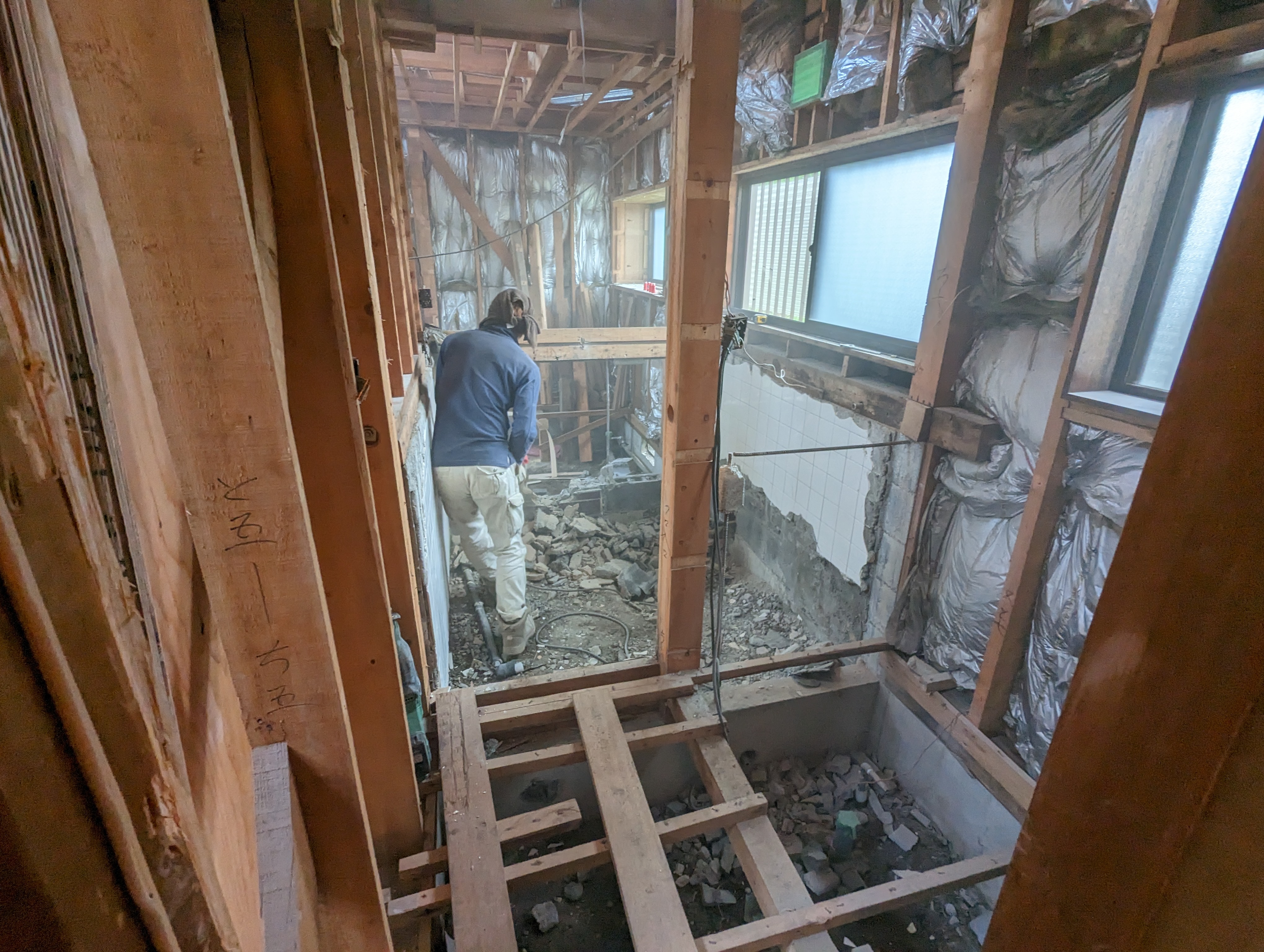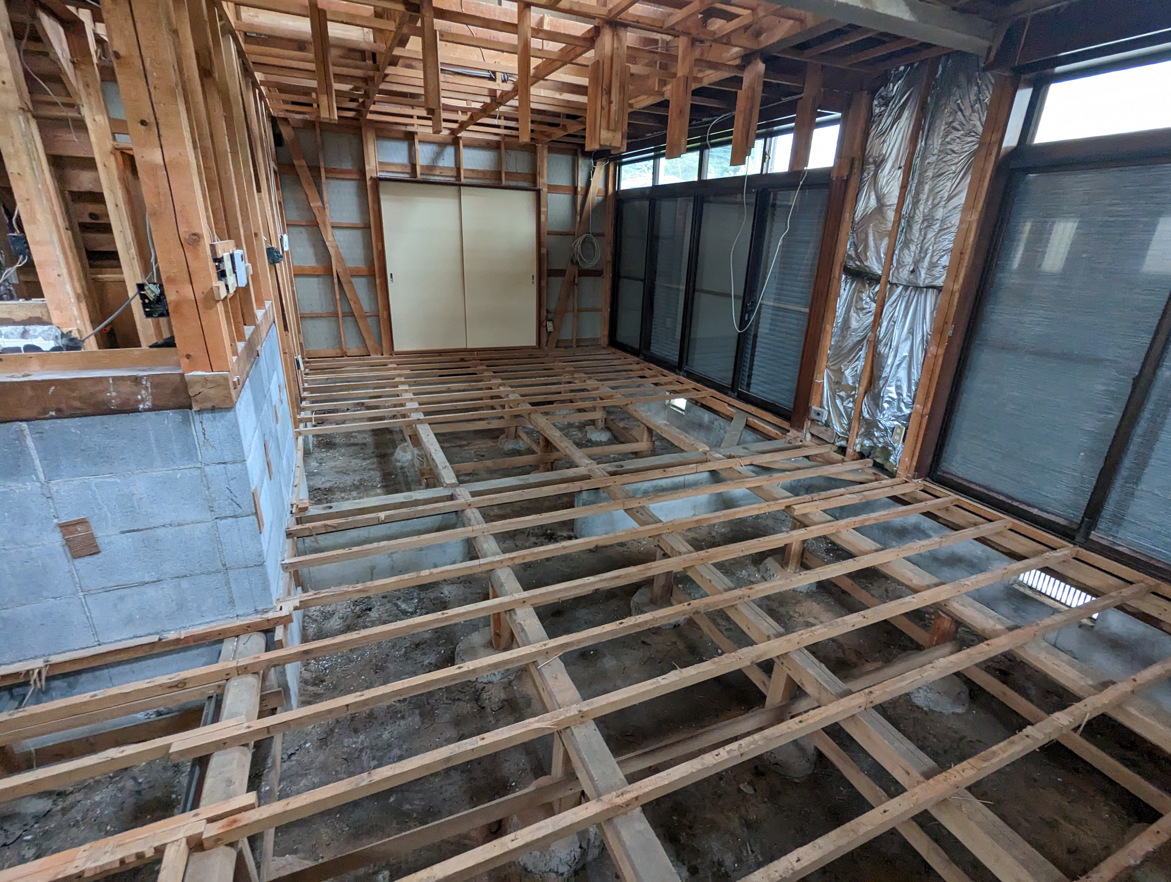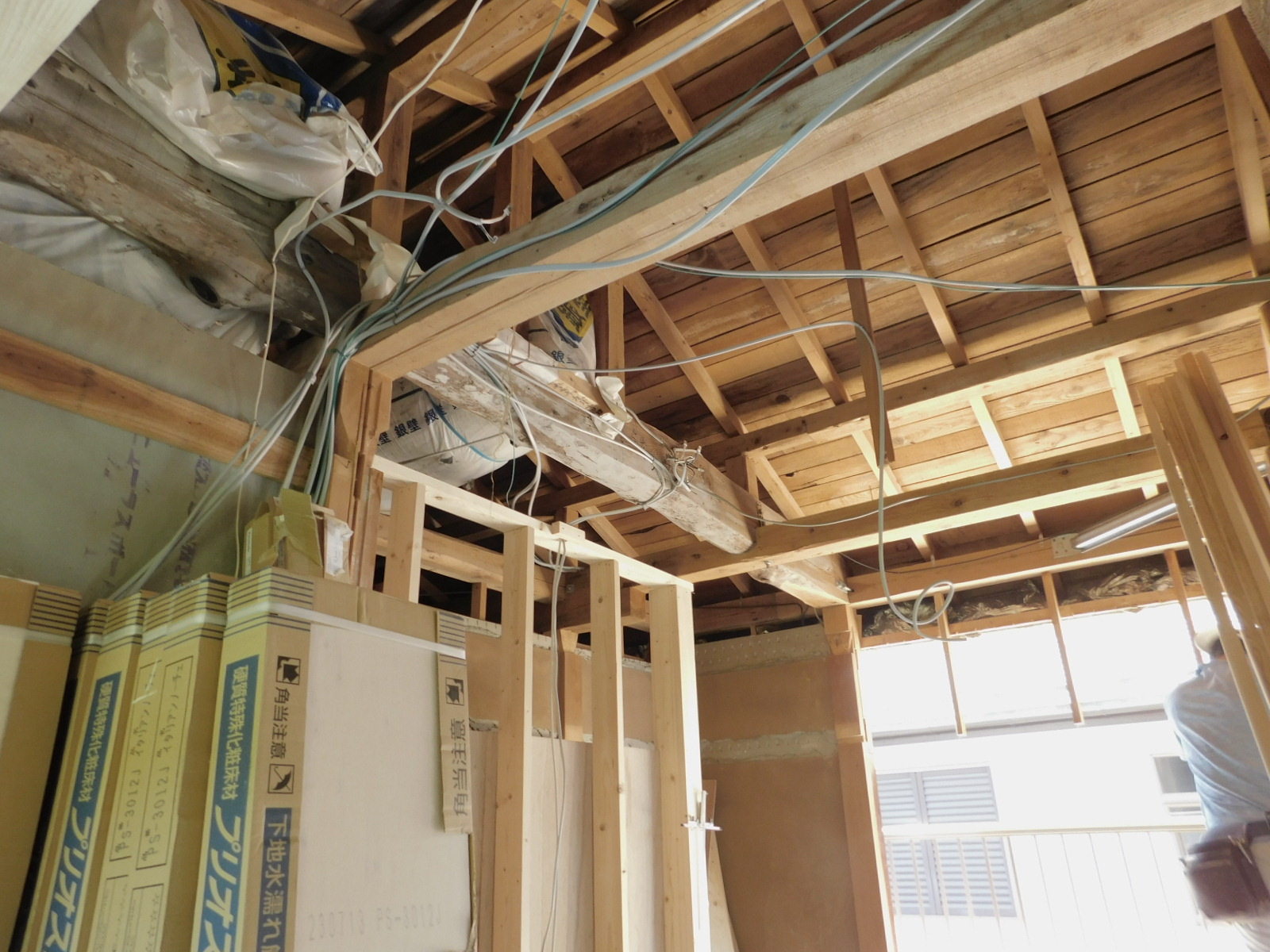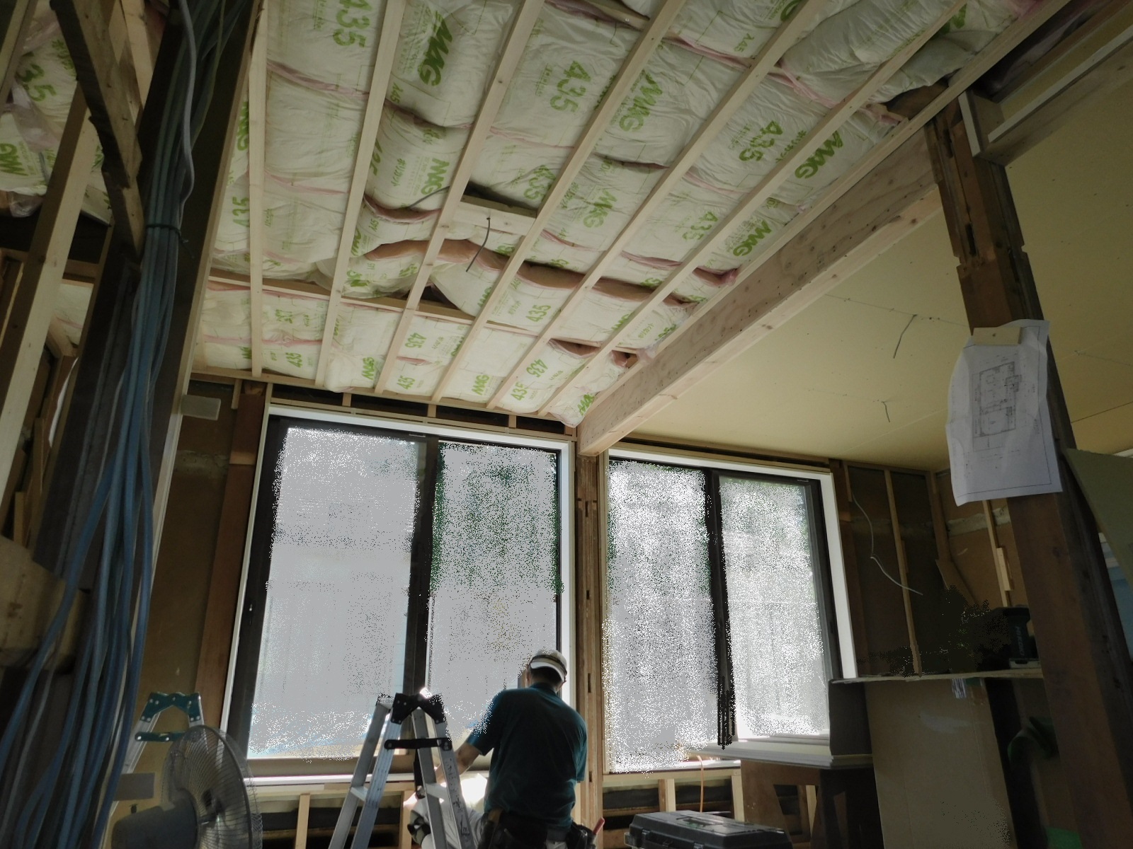 【施工中写真 2階リビングダイニングキッチン】※内部解体・断熱材施工中