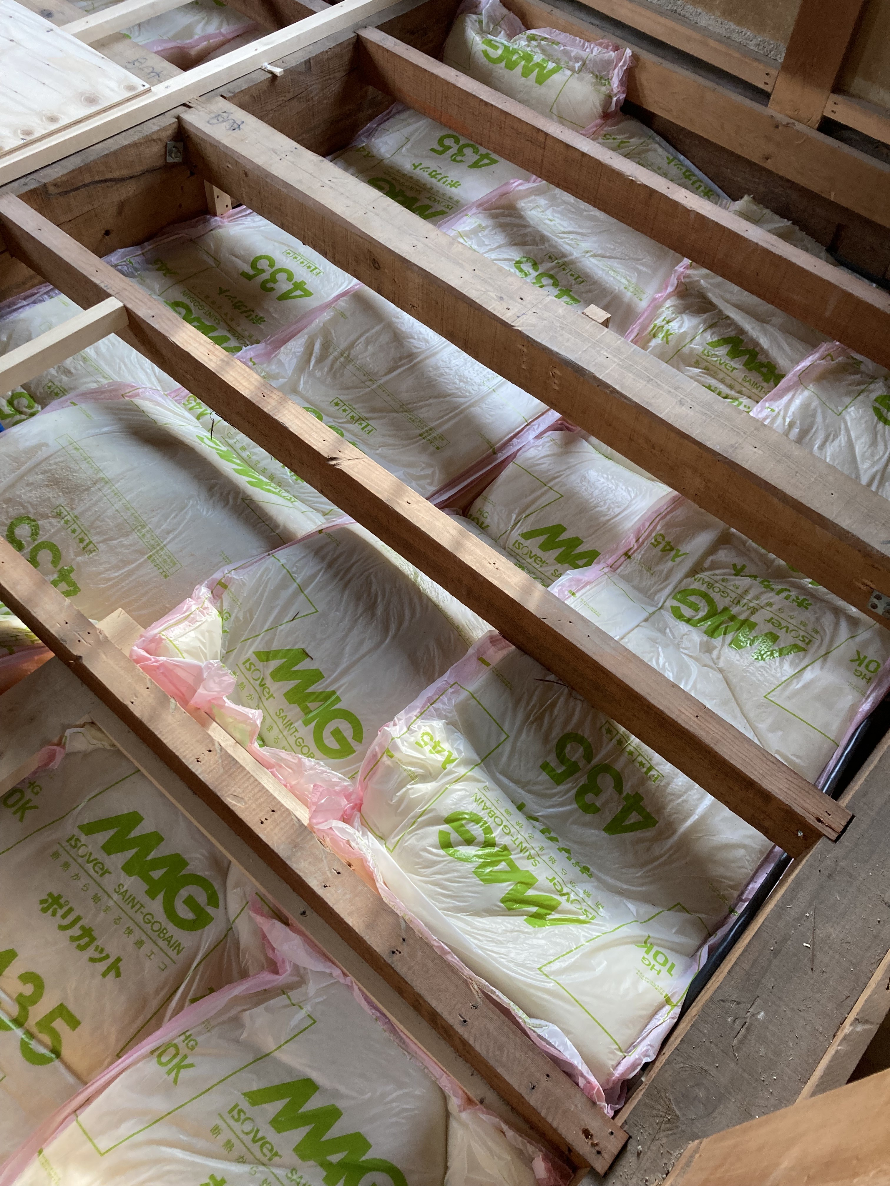 必要な箇所に適切な断熱材を入れ、2階の床にも遮音性向上の為、断熱材を入れています![]()