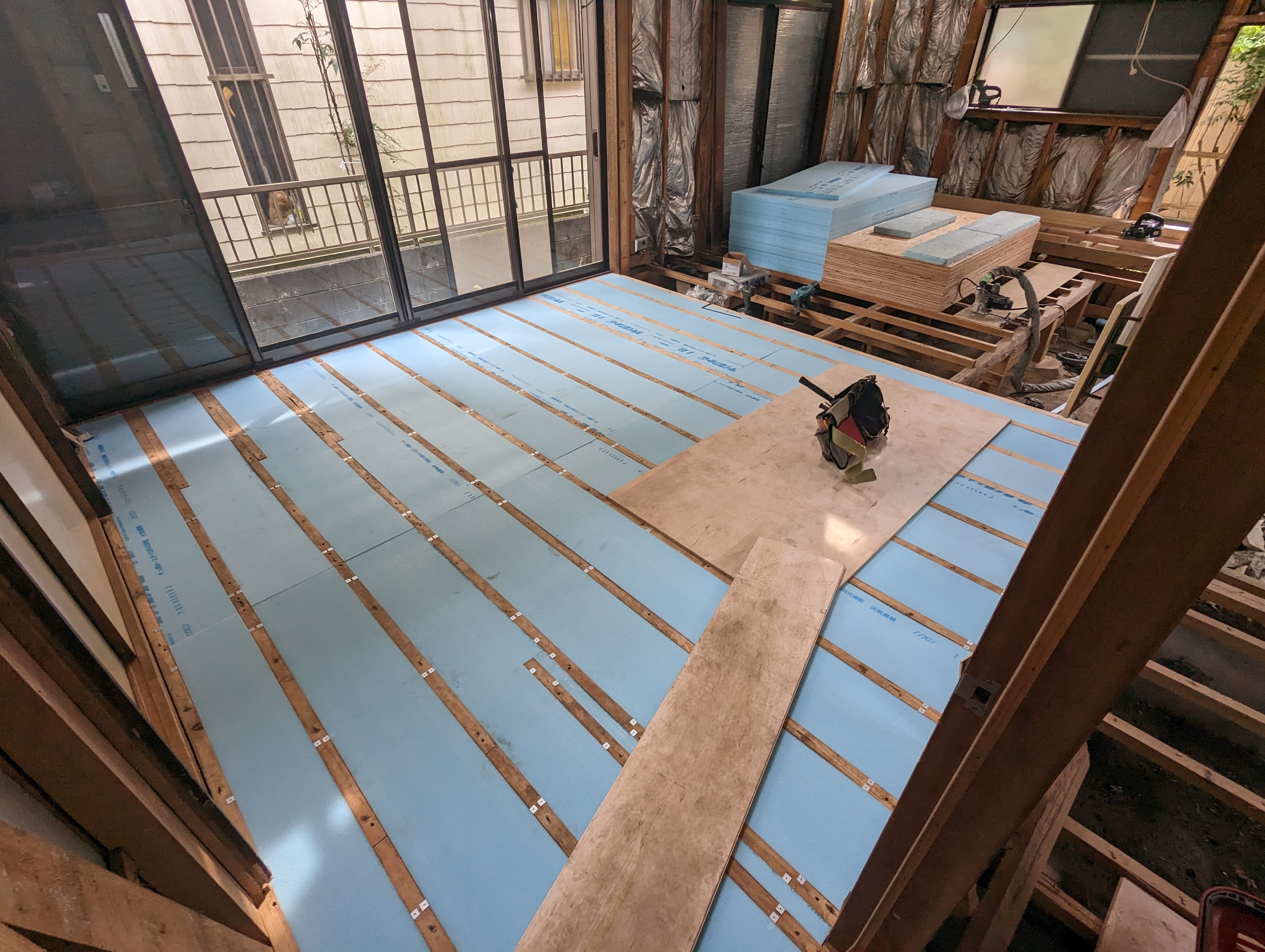【施工中写真 2階リビングダイニングキッチン】※床断熱材施工中