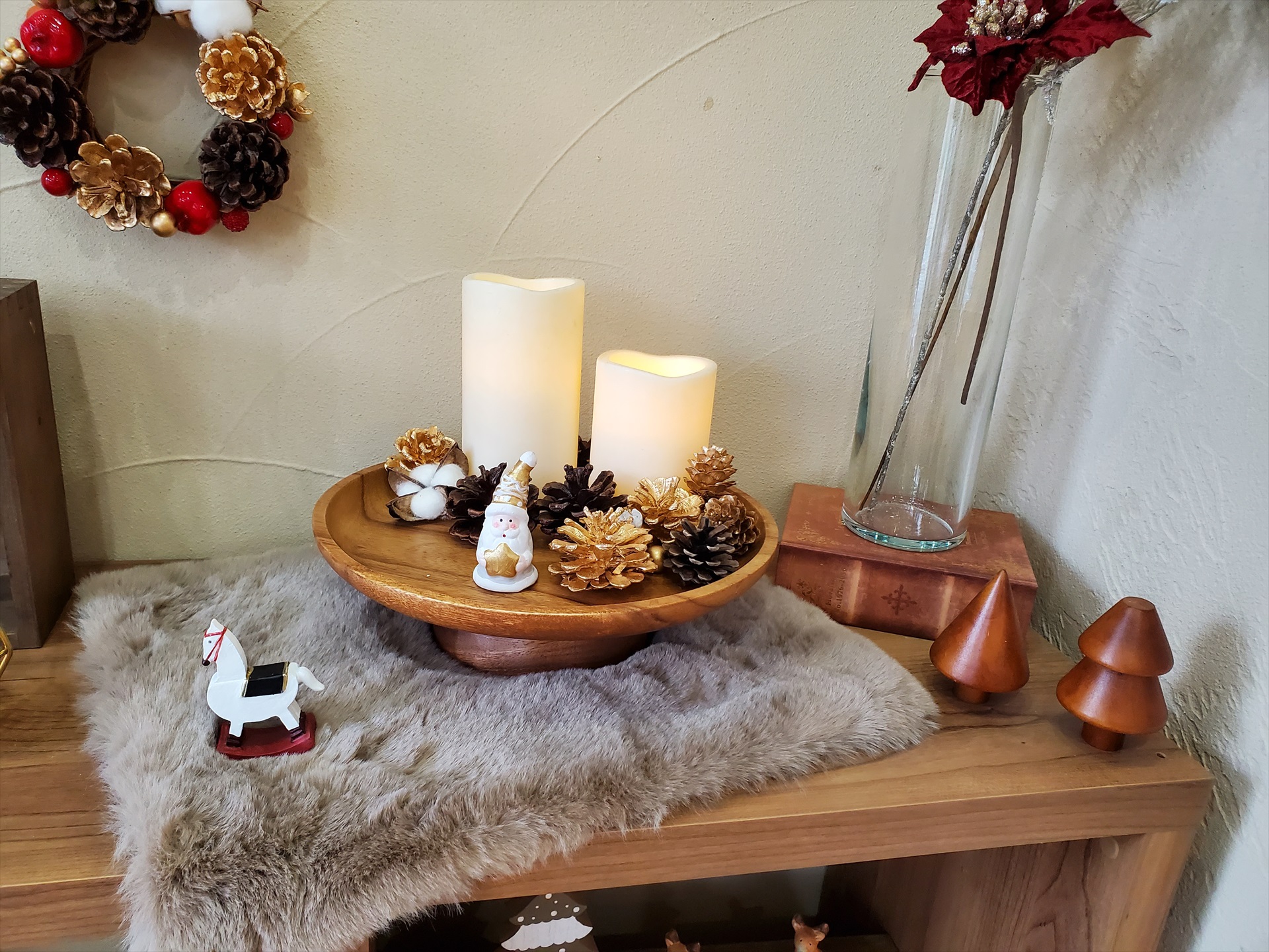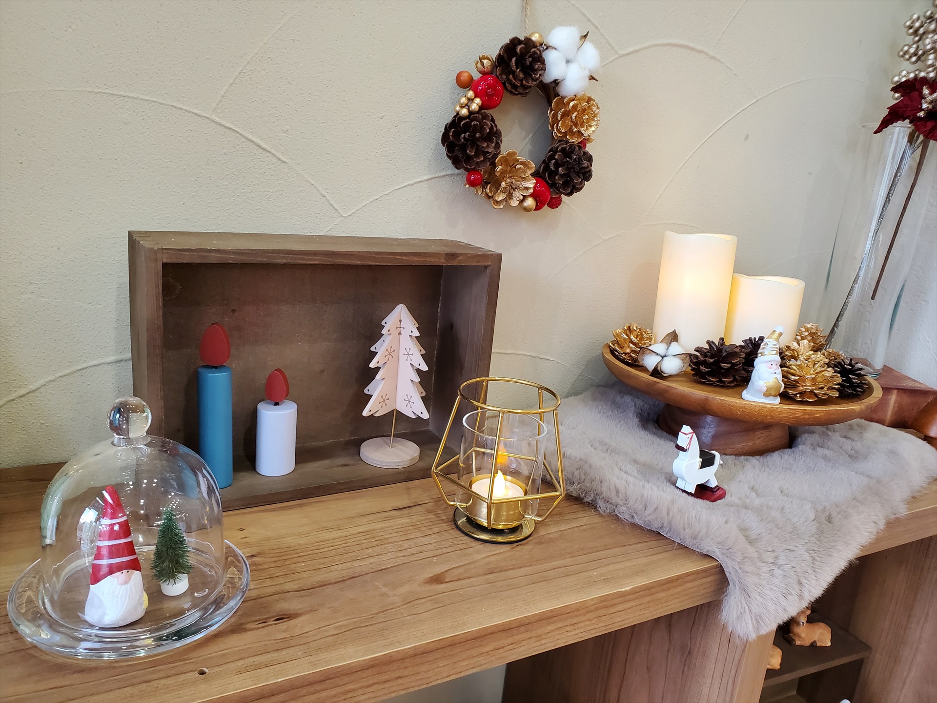 木製オーナメントを中心にナチュラルなイメージになるよう