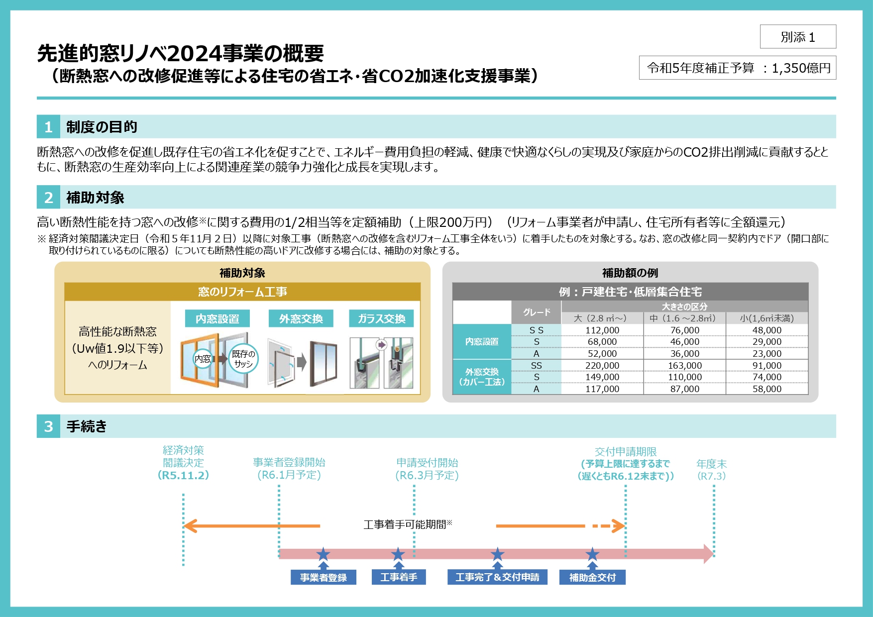 窓(サッシ)の断熱性を上げる内窓・ガラス交換・外窓交換に利用できる補助金です。