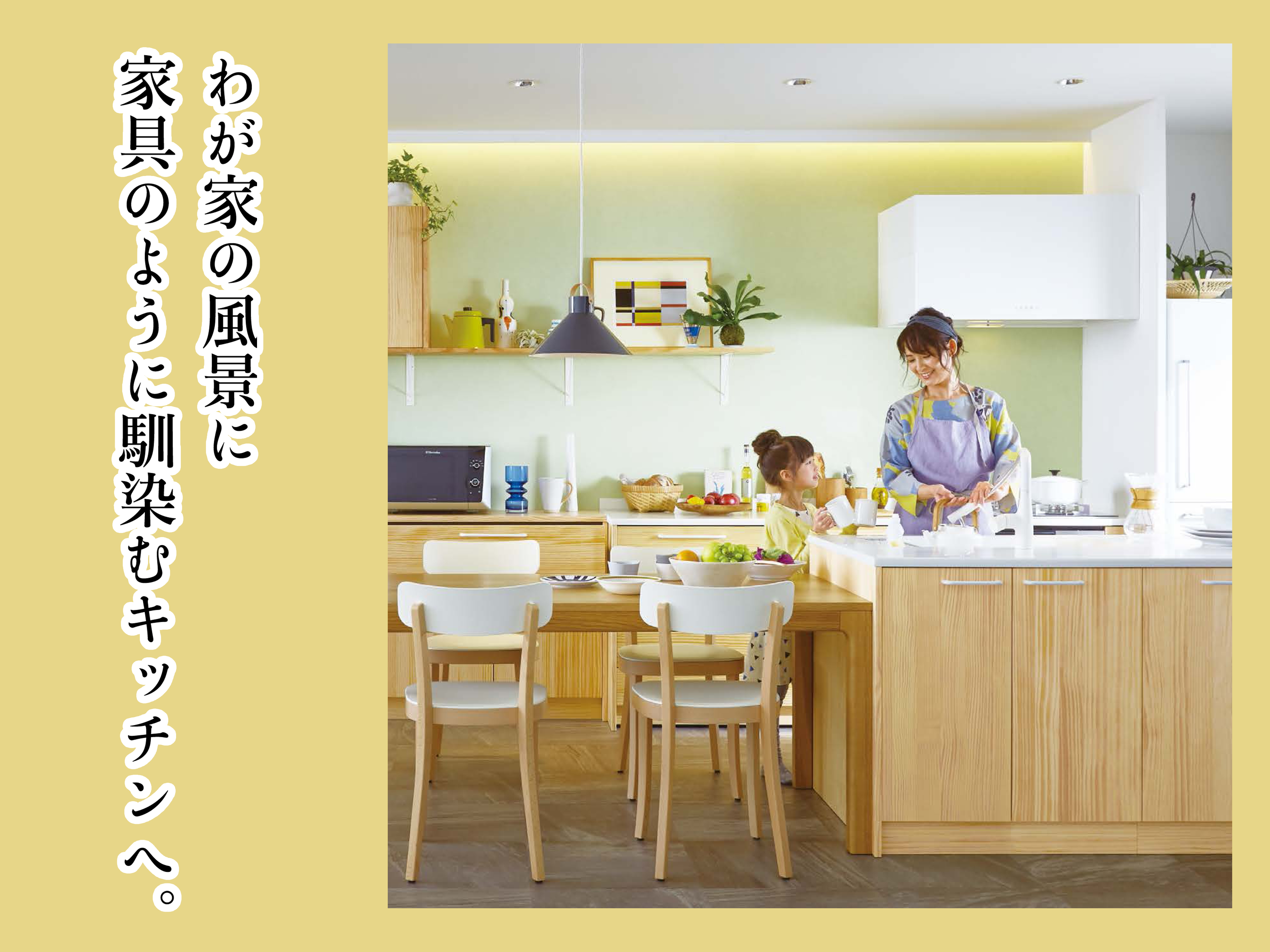無垢の木のキッチンをのびのびと楽しんでいただけます。