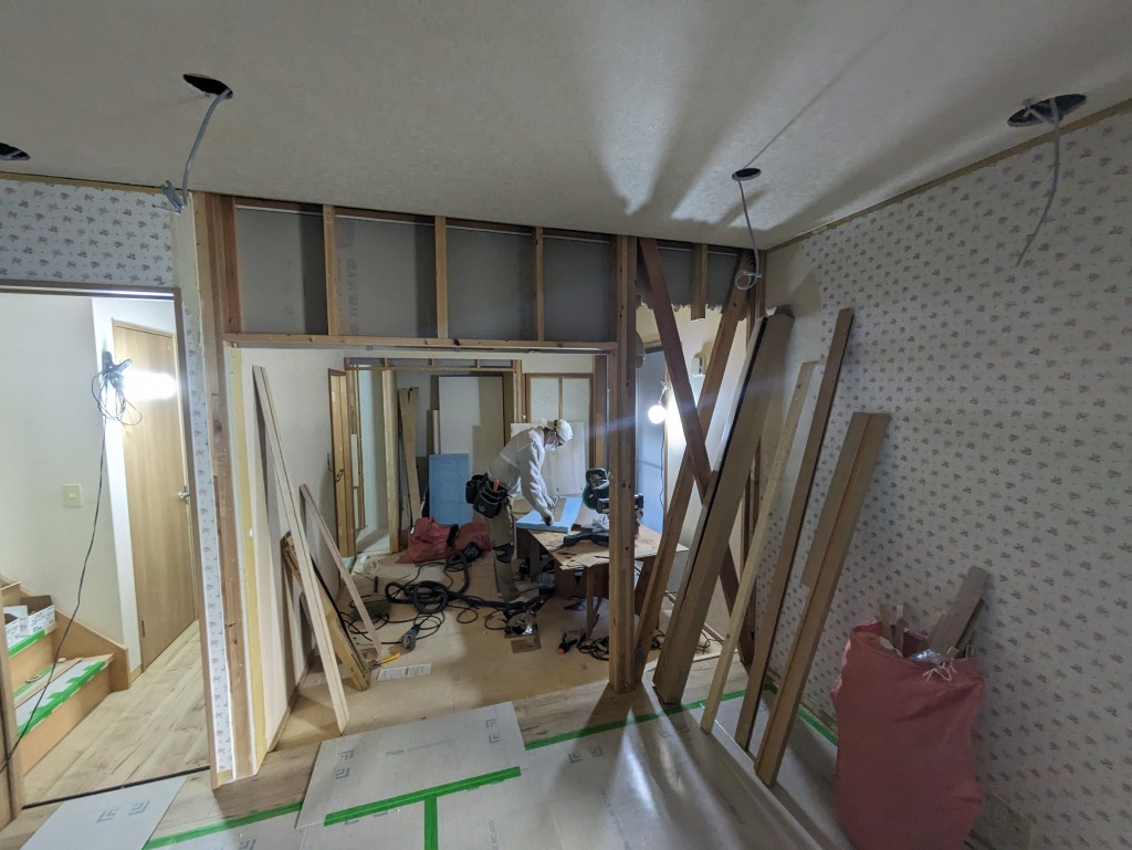 こちらの現場はT大工さんが筋交いの現しや、和室をLDKに取り込む工事を行っています。