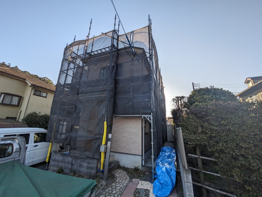 屋根・外壁の外装も一新するので、仮設足場を掛けました。