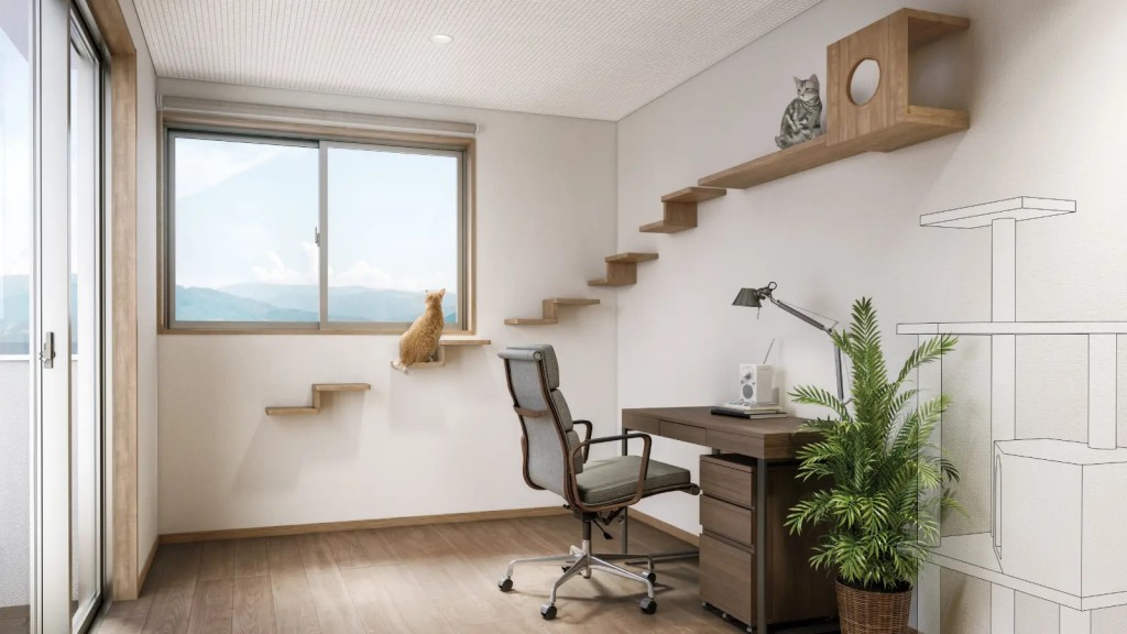 高い場所を好む、ねこの習性をサポートする壁付けステップ