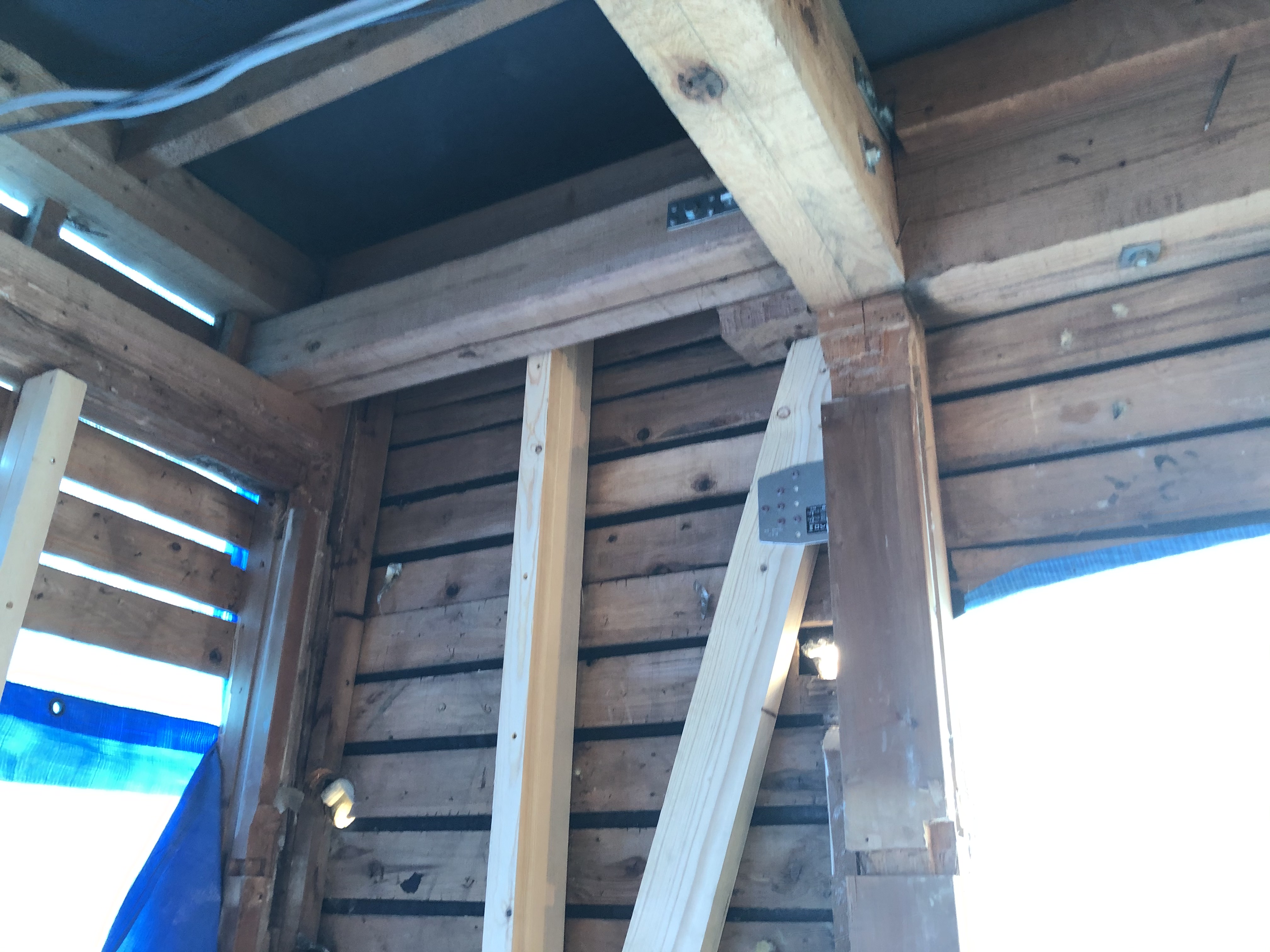 必要な個所を補強して、大地震で倒壊しないレベル(評点1.0以上)に耐震強度を上げて行きます。