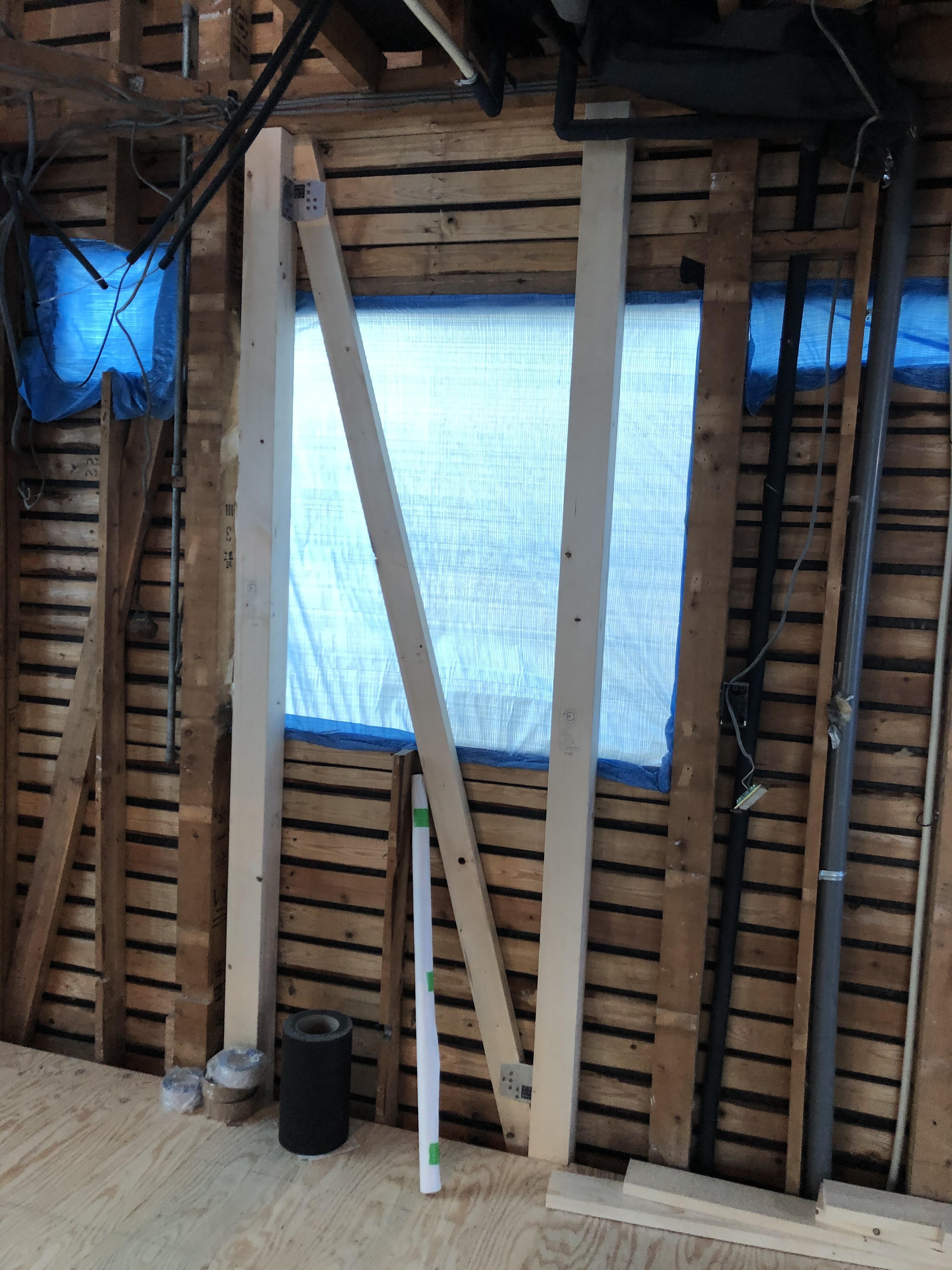 在来工法の場合、斜めに入れる木材 (筋かい) がとても重要です。