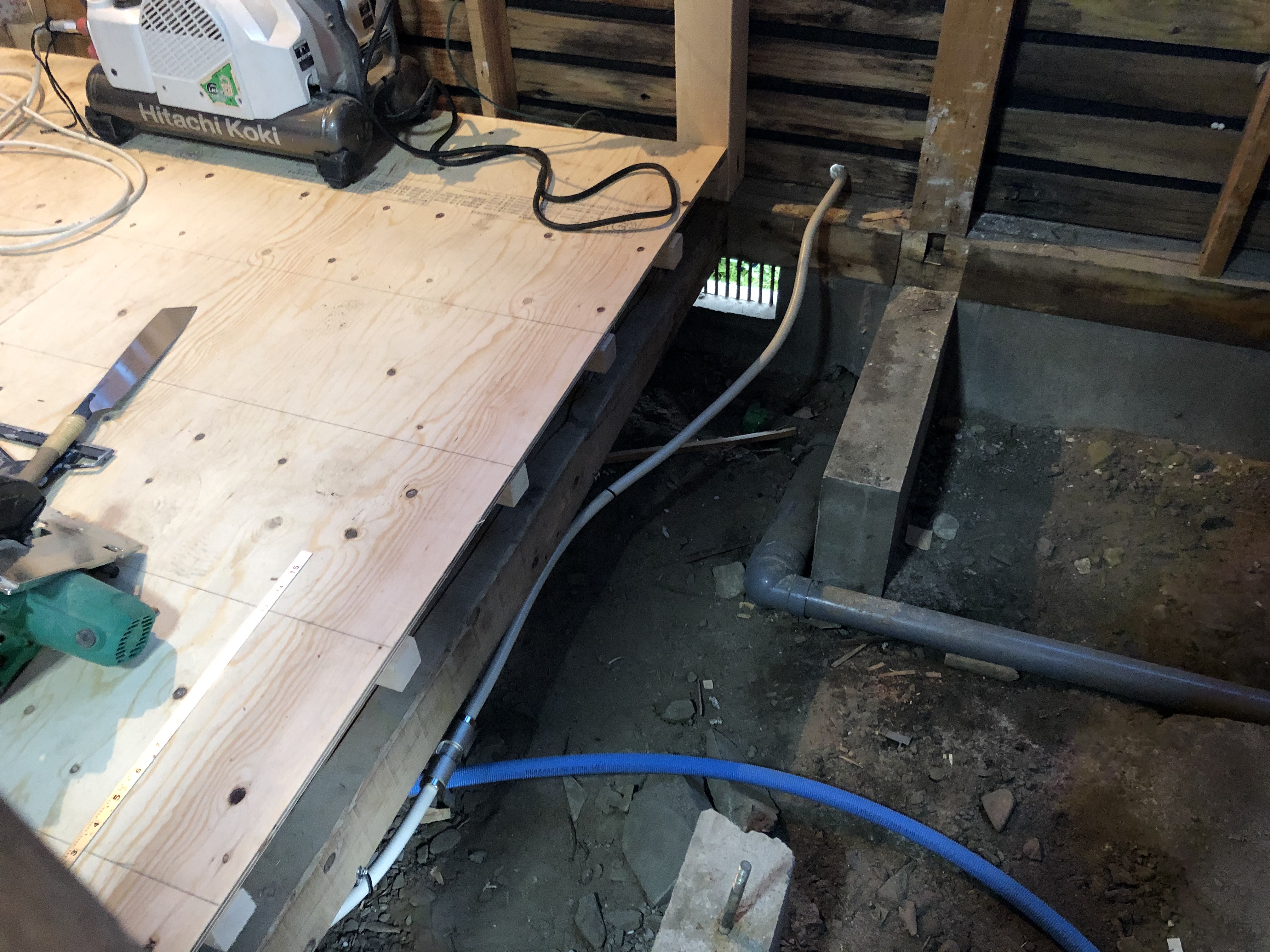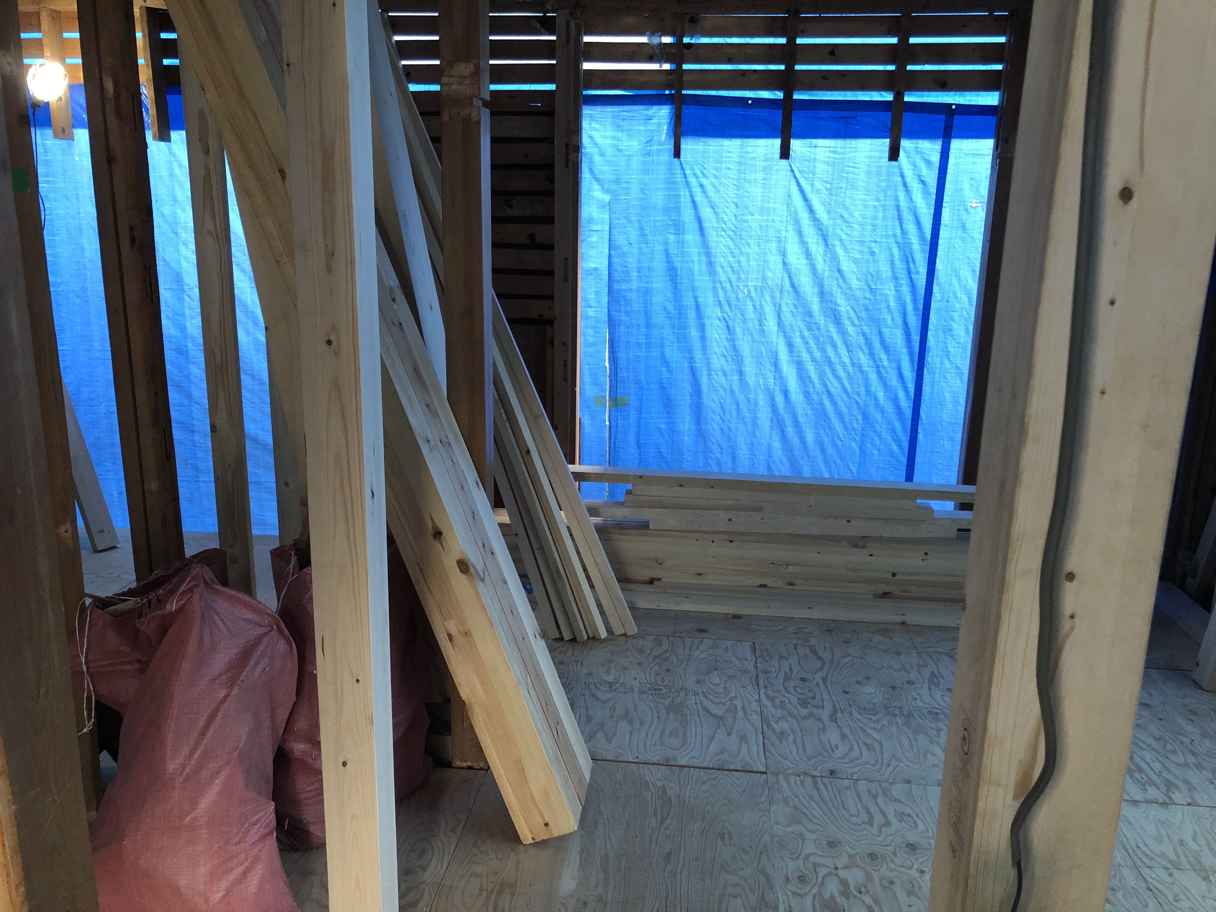 また床の下地には構造用合板(12mm)を貼って、床剛性を上げて行きます。