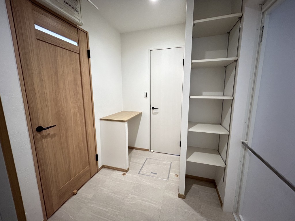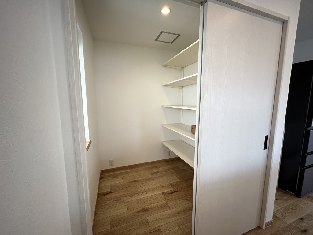 また、キッチンの背面には大きなパントリーを新設したので、たっぷり収納です![]()