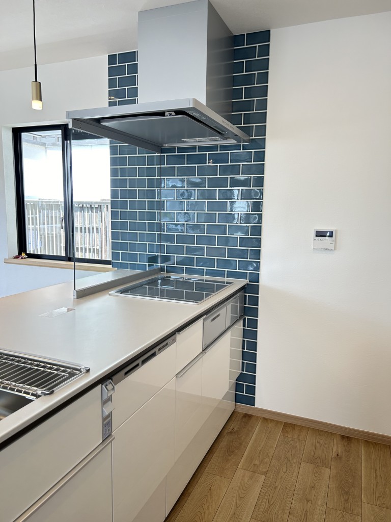 IHの横壁は、綺麗なターコイズ色の