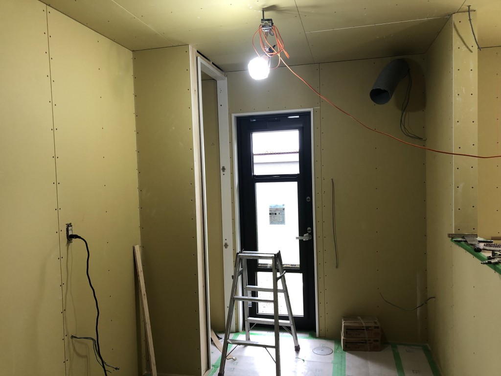 勝手口の設置やパントリーの造作等、大工さんの工事も予定通りに完了しました。