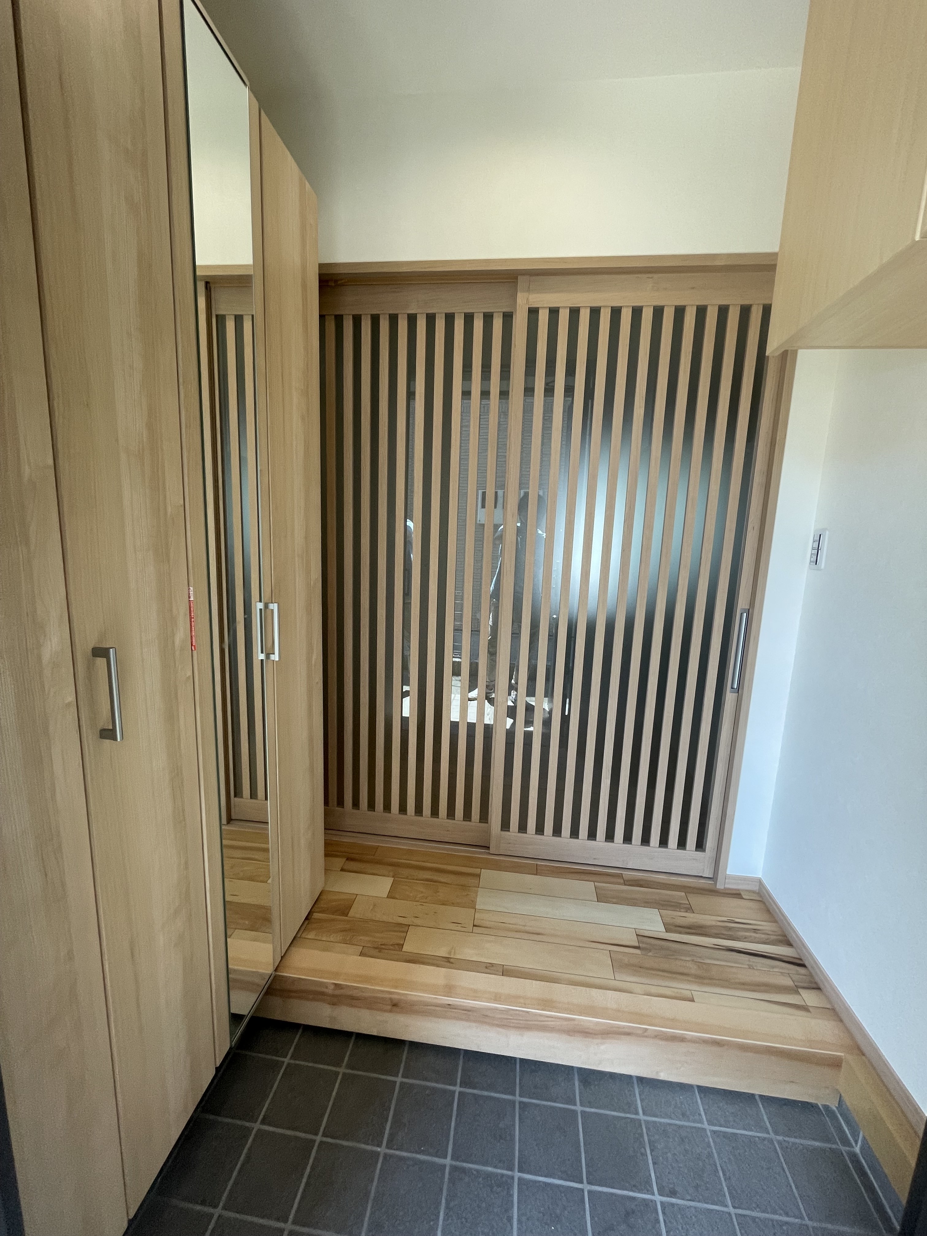 玄関収納 (靴箱) は新しい商品に交換し、右から左へと移動しています。
