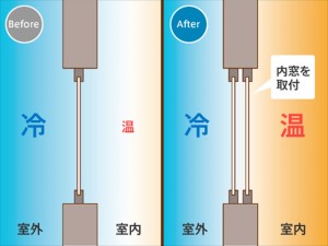 ガラスは熱を通しやすいので、1枚ガラスの窓の断熱性はほとんどありません![]()