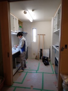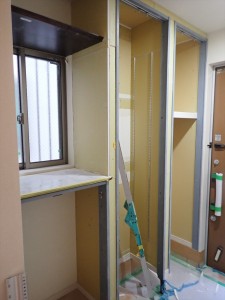 設備交換をするキッチン・洗面台に加え、収納の造作を行う箇所も解体が完了しました!