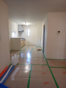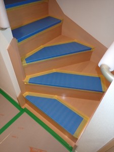 床や階段は既存利用なので、傷付けないよう丁寧に養生をして工事を進めていきます!