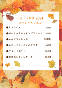 今年もカフェエンラージでは、いちょう祭り限定の特別メニューをご用意いたします![]()