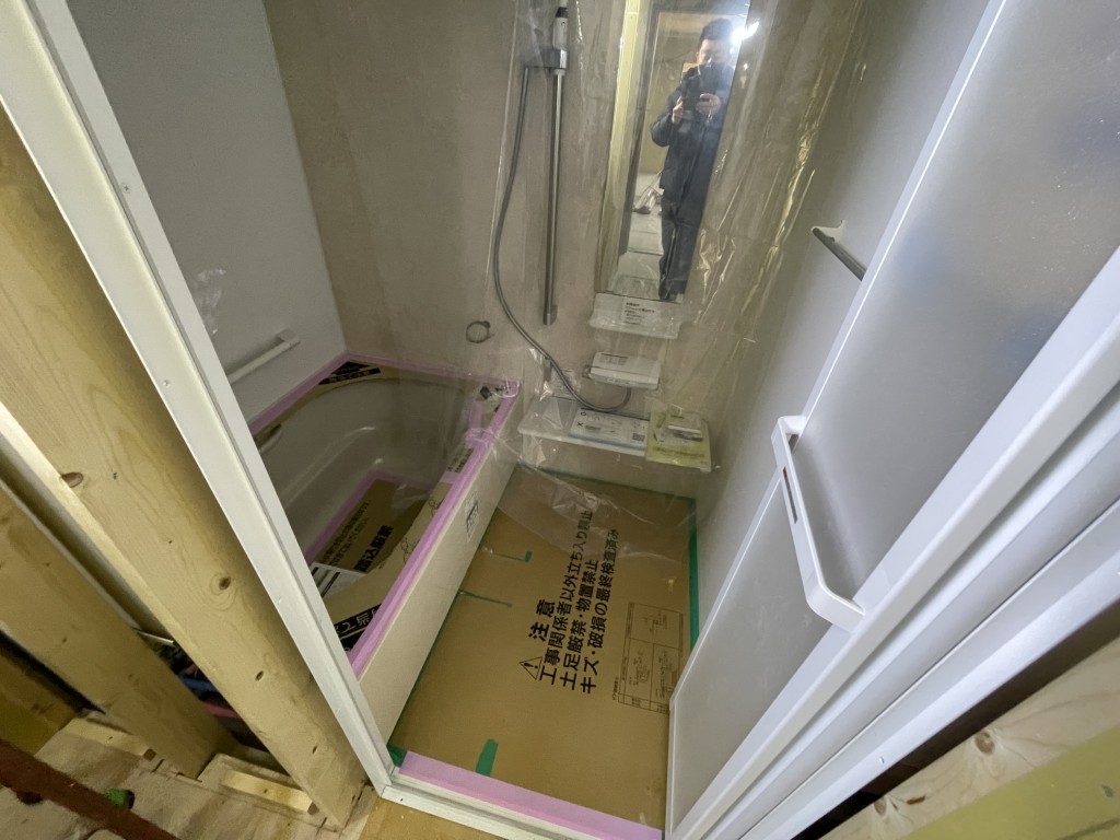 先日新しいユニットバスが現場に搬入されました。
