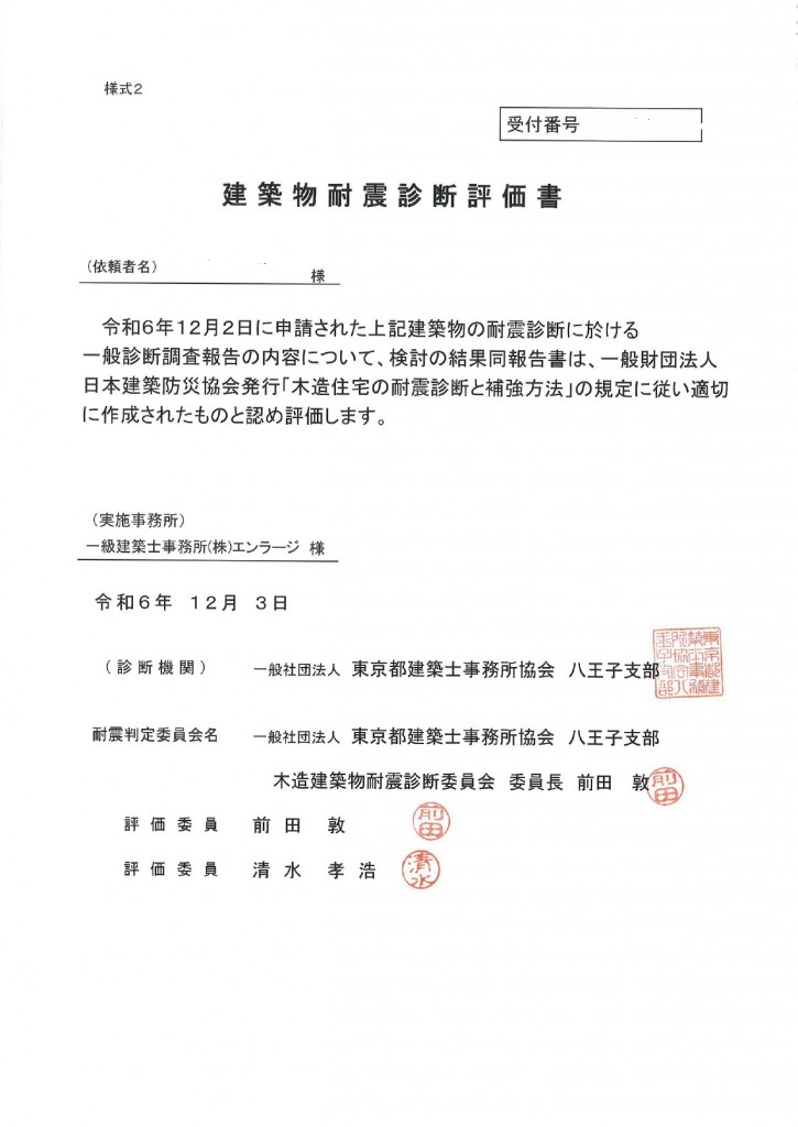 昨年秋の「第29回八王子市民リフォーム祭」にご来場され「耐震について」のご相談を受けました。